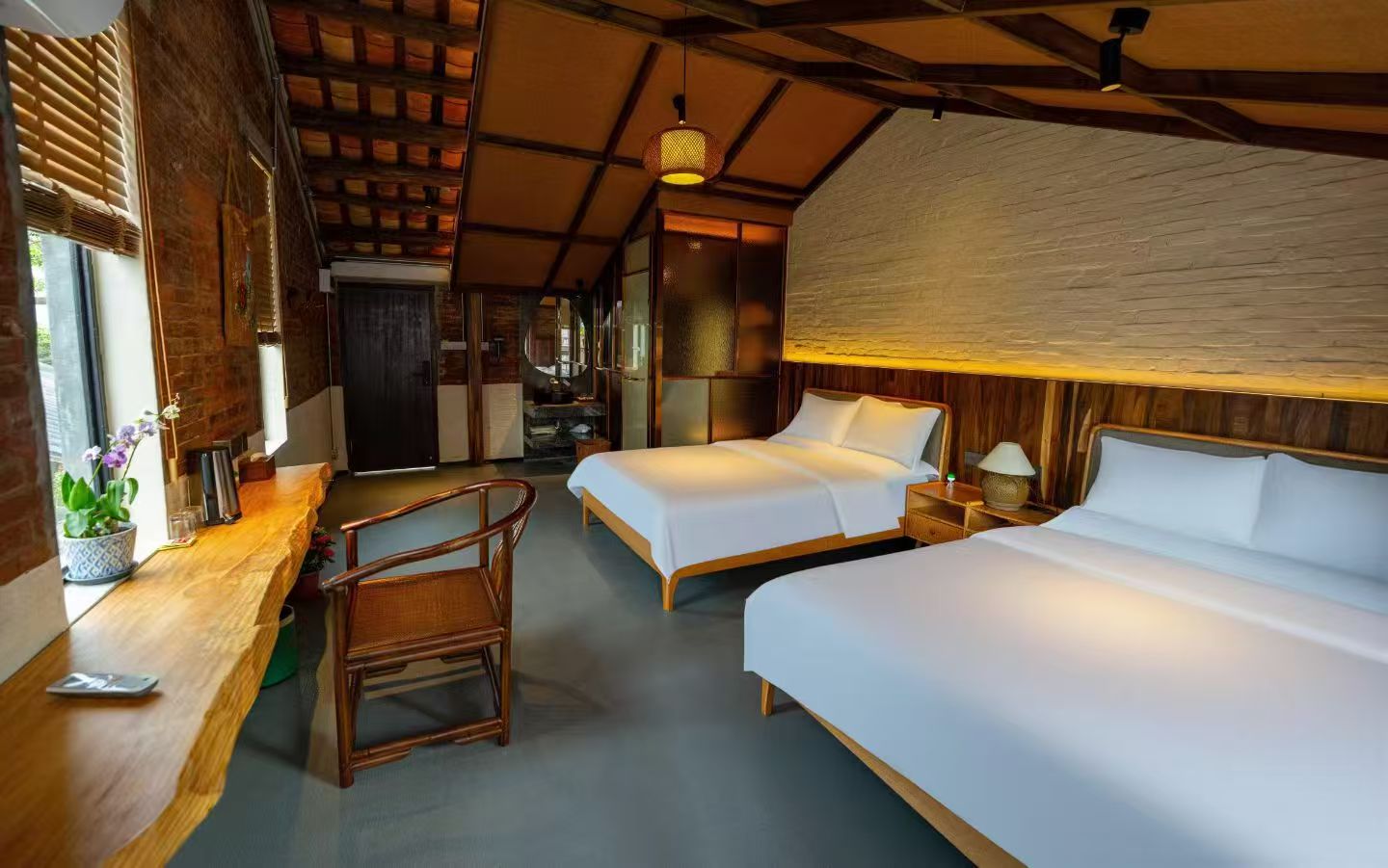 作为土生土长的平沙岛人,李英乔打造阅江里民宿的初心,源于看到上岛游客日益增多却缺乏优质住宿的现状。如今,阅江里民宿集群分三期打造,一期已运营第三个年头,二期也已开业半年,三期正加紧筹备,预计今年五一可正式营业。目前一期、二期共有14间客房,配备二十多个床位,涵盖单床房、大床房等多种房型,满足不同游客的住宿需求,春节期间的客房早在节前一个月就被抢购一空。