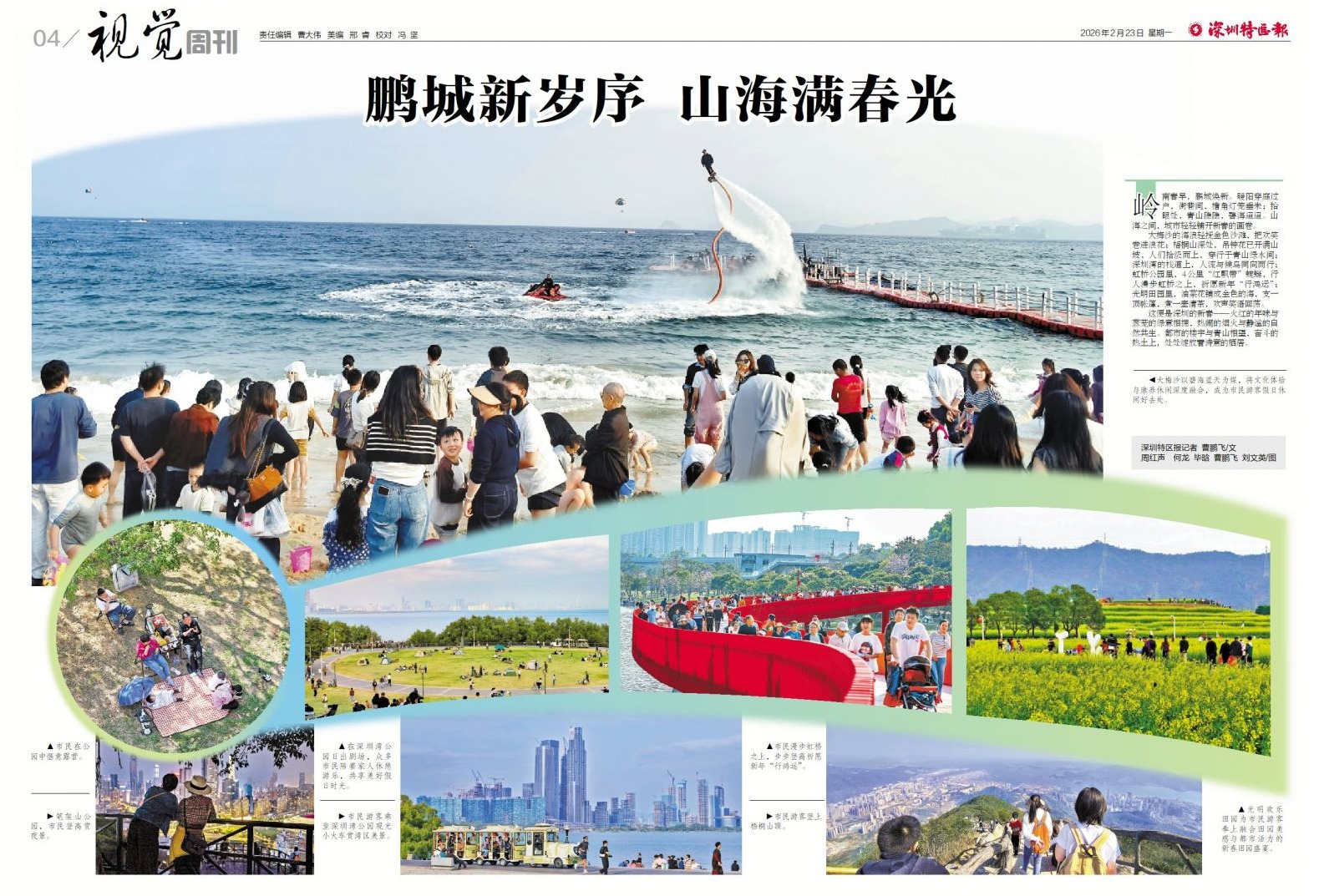 大梅沙的海浪轻抚金色沙滩,把欢笑卷进浪花;梧桐山深处,吊钟花已开满山坡,人们拾级而上,穿行于青山绿水间;深圳湾的栈道上,人流与候鸟同向而行;虹桥公园里,4公里“红飘带”蜿蜒,行人漫步虹桥之上,祈愿新年“行鸿运”;光明田园里,油菜花铺成金色的海,支一顶帐篷,煮一壶清茶,欢声笑语回荡。