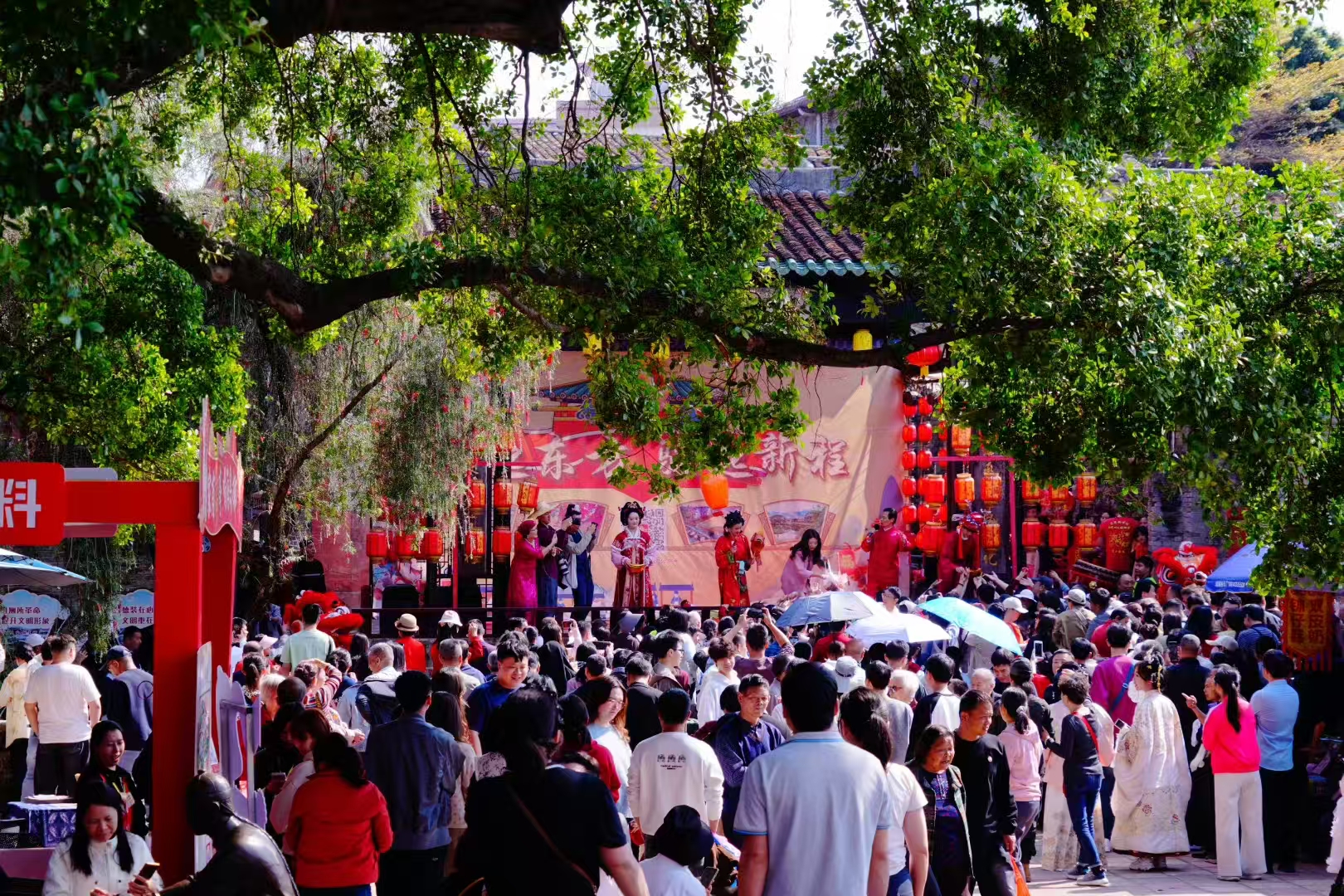 “我们准备的节目全部是最传统的节日活动,让大家更多地去感受传统文化的魅力。”陈玲介绍,从大年初一到元宵节,古村每天推出不同主题节目:财神送福、醒狮游园、农耕巡游、粤韵展演、武韵太极轮番上演,夜晚更有《梦回南社》情景剧与炫彩灯光秀,打造“白+黑”全时段沉浸式体验。这种创新表达既守住了明清古村忠孝文化、宗祠文化、非遗民俗的根脉,又赋予传统文化当代活力,实现了社会效益与经济效益的双丰收。