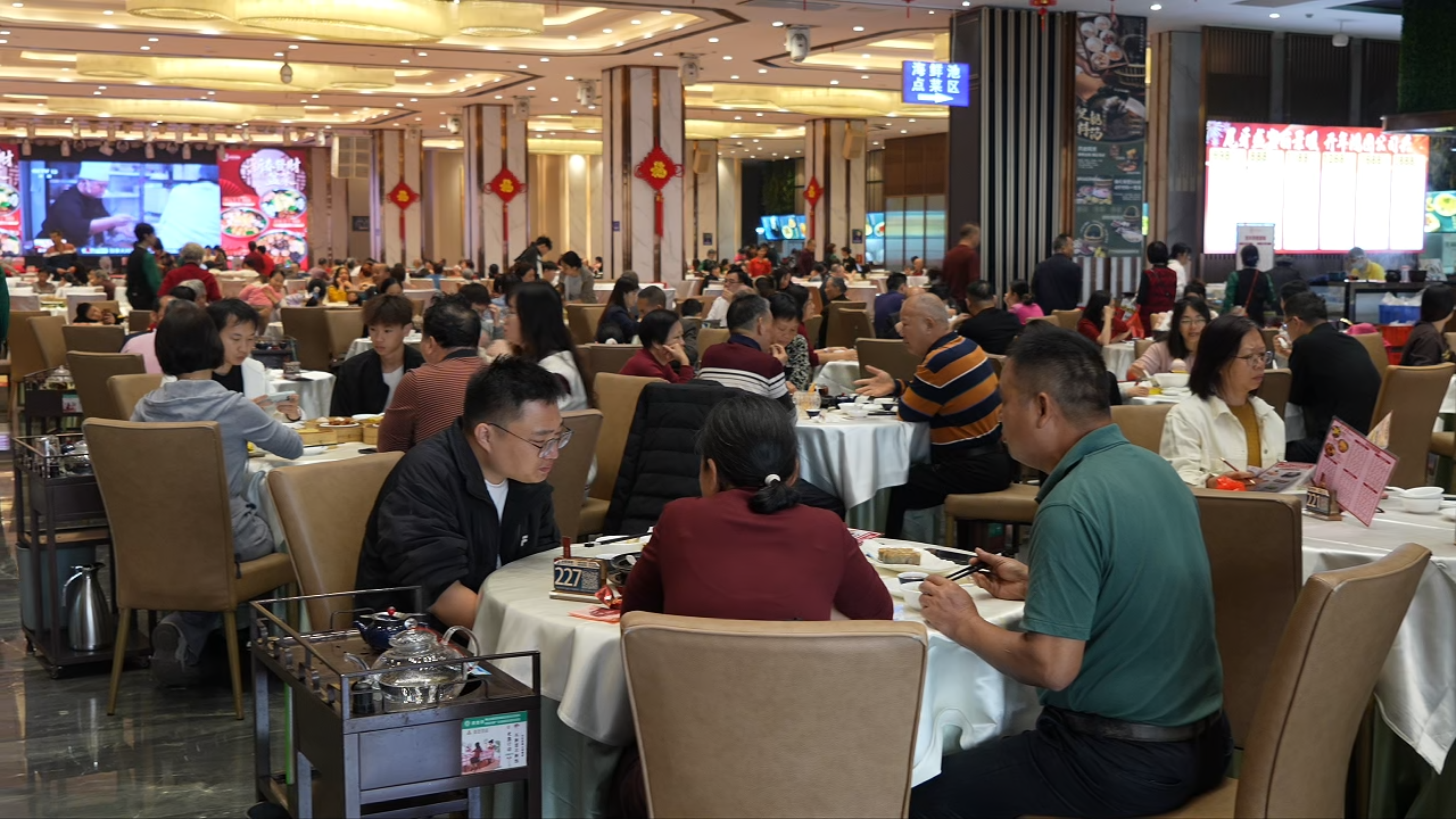 餐饮市场则迎来消费高峰,年夜饭、团圆宴、家庭聚餐需求集中释放,全区餐饮业营收同比增长13%-16%,重点商圈、品牌餐饮及老字号门店营收增幅更是达到22%-31%。九江雍悦庄、尖沙咀等餐饮门店单日营业额最高达23万元,同比增幅超两成;丹灶翔隆楼、康富囍宴等特色餐饮门店一座难求,随意院子·翰林谭家菜营业额创同期新高。南海特色餐饮盆菜持续热销,节前15天进入订单高峰期,多家老字号及大中型餐饮企业除夕当日盆菜订单均超800份,成为新春餐饮消费的标志性产品。