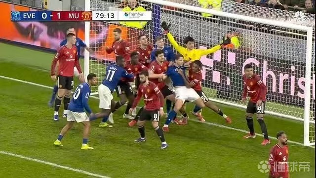 比赛最后10多分钟,埃弗顿连续获得角球机会,为寻求扳平,埃弗顿在角球进攻中采取了极具争议的战术——多名球员在小禁区内对曼联门将拉门斯形成合围式挤压,试图用身体干扰其判断与出击。