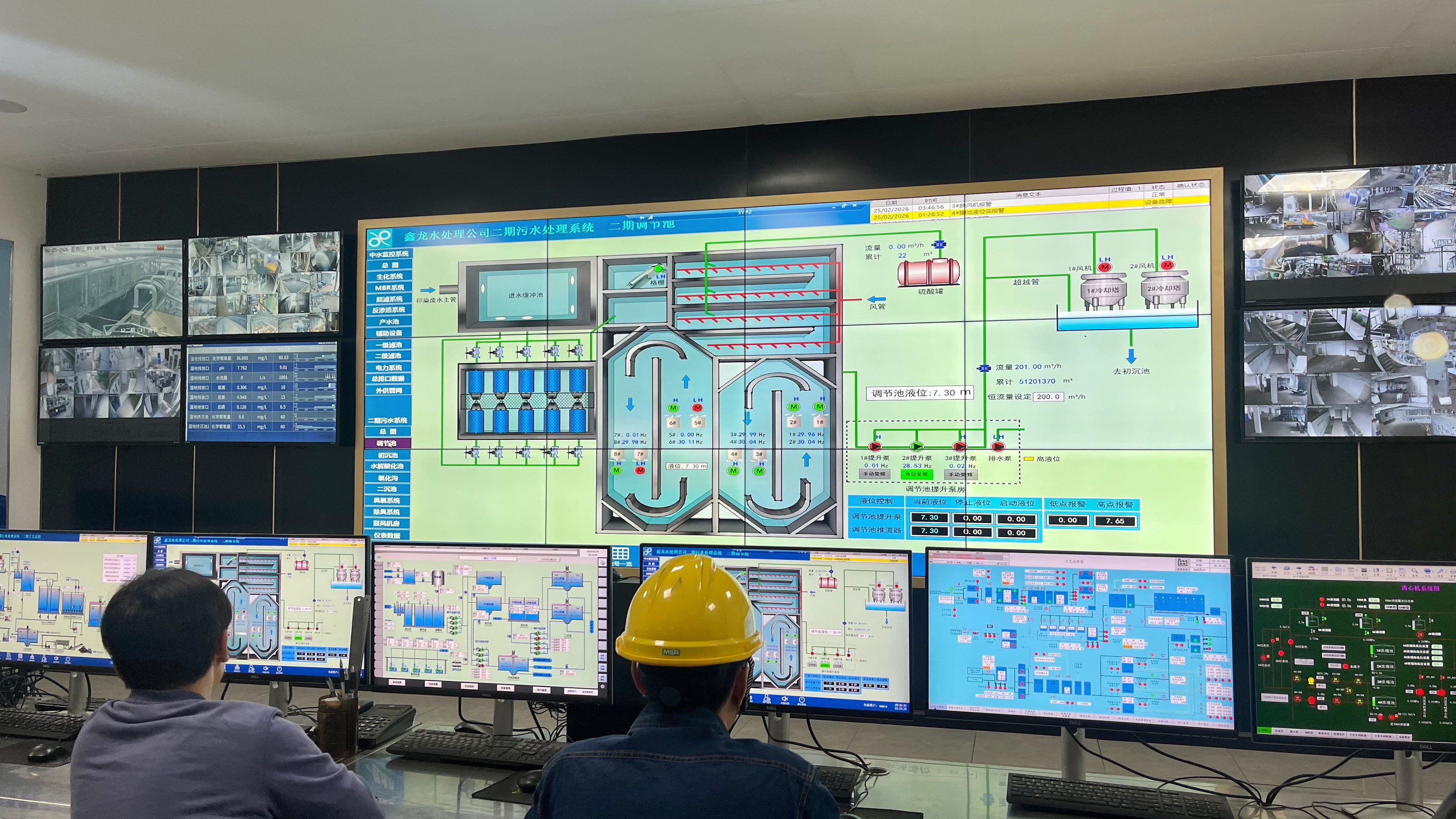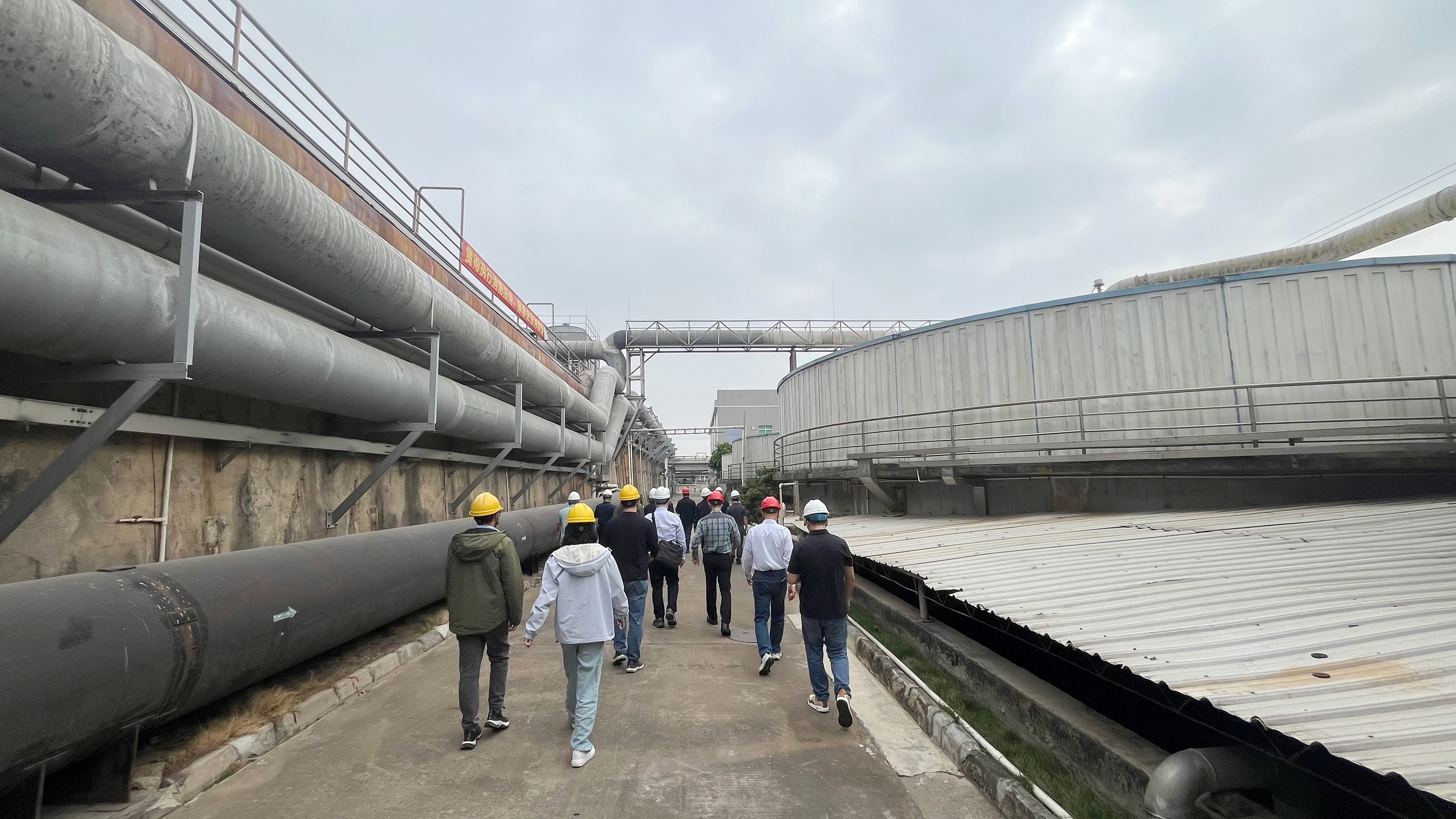 当天一早,帮扶工作组一行直奔鑫龙公司厂区,先后深入污水处理系统中控室、高浓度废水预处理车间、环保处理设施等关键点位,通过实地查看设施运行状态、调阅中控系统实时数据、现场问询一线操作流程等方式,掌握企业污染治理设施运行与环境管理实况,系统排查环境管理薄弱环节及潜在风险。