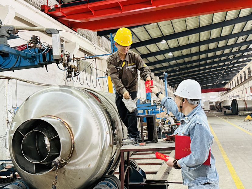 “公司发了300元红包,接住这份‘开门红’,感觉浑身都是干劲!”一线员工李凤梅接过红包,笑容里满是对新一年的憧憬。而在焊装车间,技术工何林兵正熟练地操作设备,他目光坚定地说:“马年,我们的目标很明确,携手继续让‘绿色染整’技术被世界看见。”