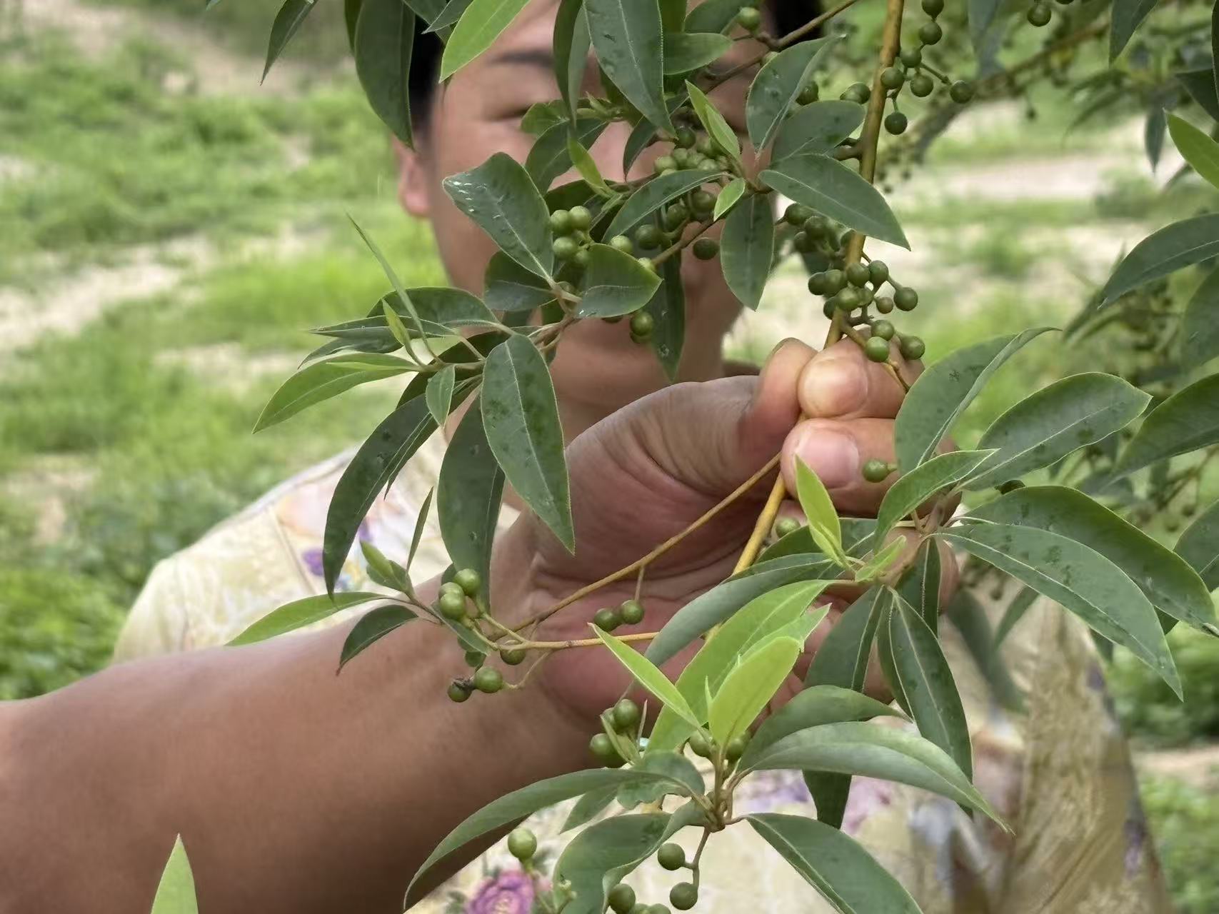 当花落籽结实时,枝头将挂满一串串如胡椒粒般大小的绿色果实,挂果量极大。木姜子是一种药食同源的植物,与花椒、胡椒相似,兼具药材属性。几年前,农业公司利用桉树改造地尝试种植,去年已进入丰产期,单是鲜果就收获了一万多斤。