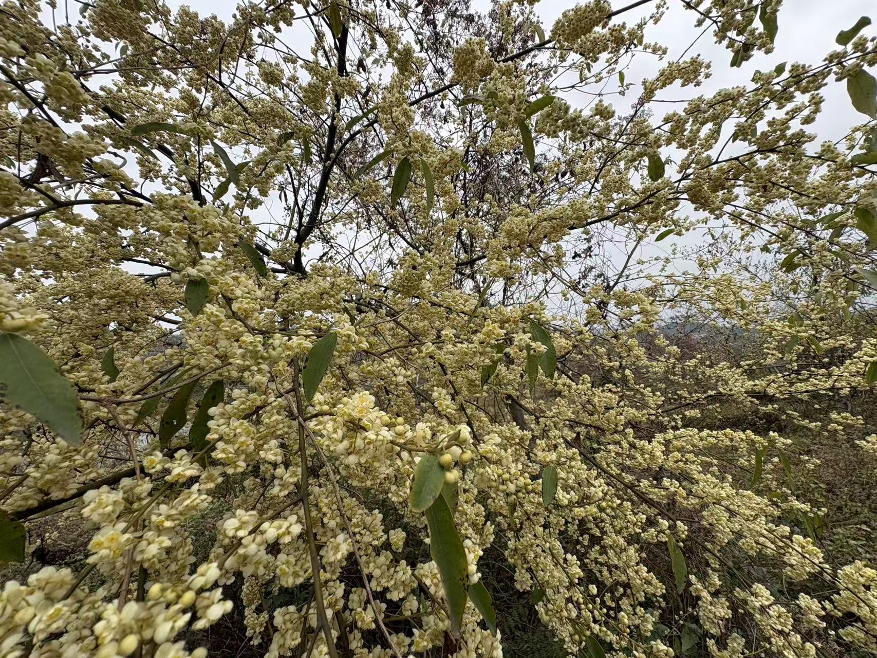 “冬日里,整棵树的老叶全部掉光后,才开始萌发花芽。”种植园负责人李秀蓉指着压满花枝的枝条介绍道,“春风一吹,花枝尖上才吐出几片嫩绿的新叶,现在是花开得最纯粹的时候。”虽然去年冬旱少雨,负责人表示今年花开得尚未达到最鼎盛的状态,但据天气预报即将迎来春雨,届时雨润花娇,木姜子花海将迎更加绚烂的盛花期。