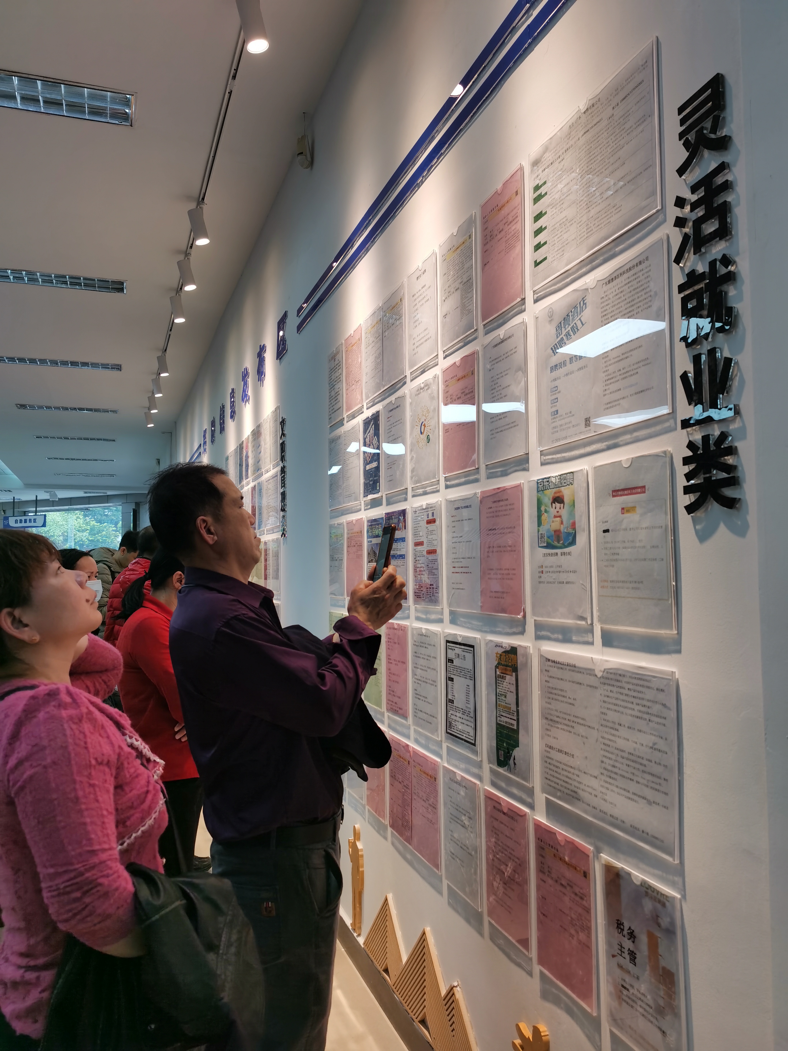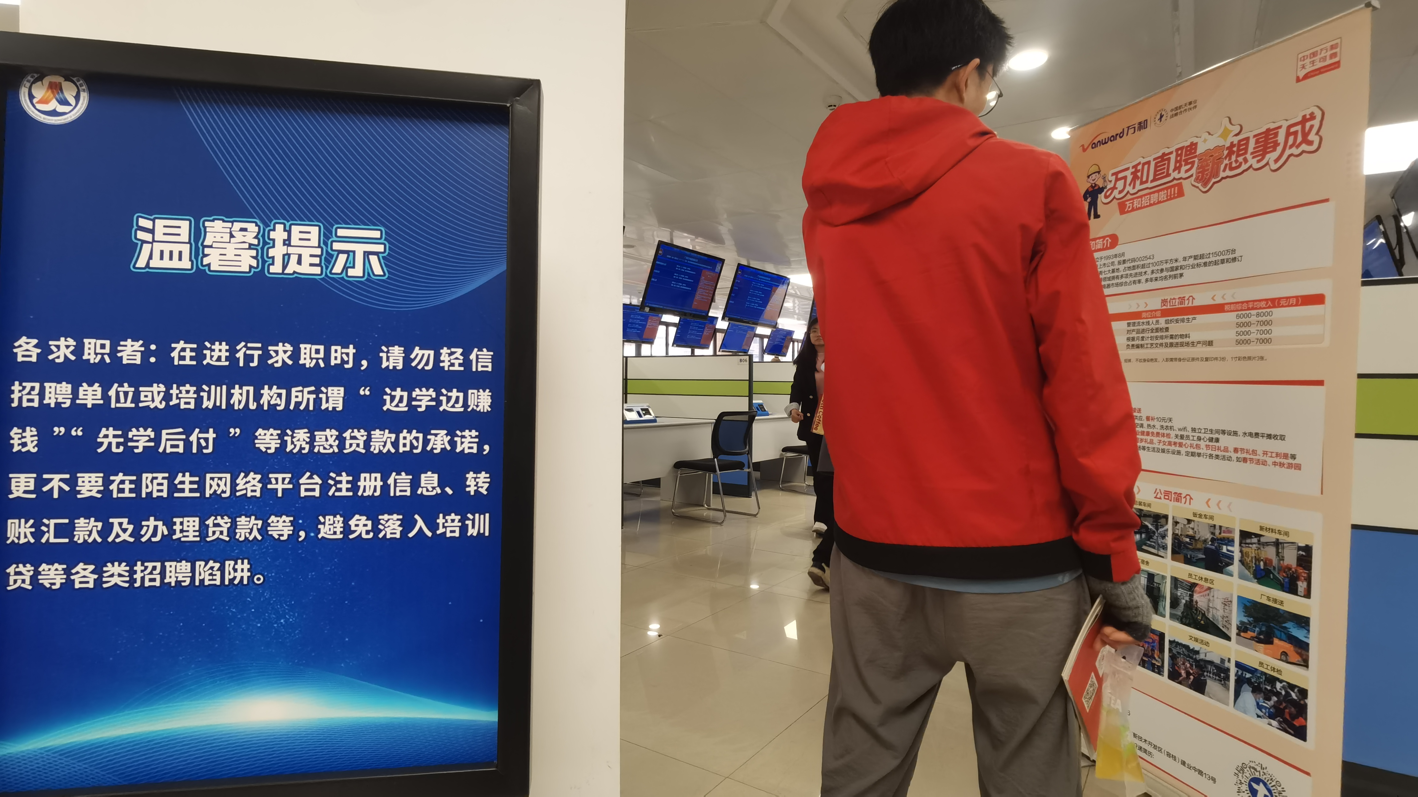 一楼大厅内,“岗位查询区”里,不少求职者在台式显视屏上查找用工单位招聘信息。大厅左侧墙上,按“灵活就业类”“文职管理类”“专业管理类”等类别,公布了各企业、机构用工需求信息,吸引不少求职者“对号入座”。