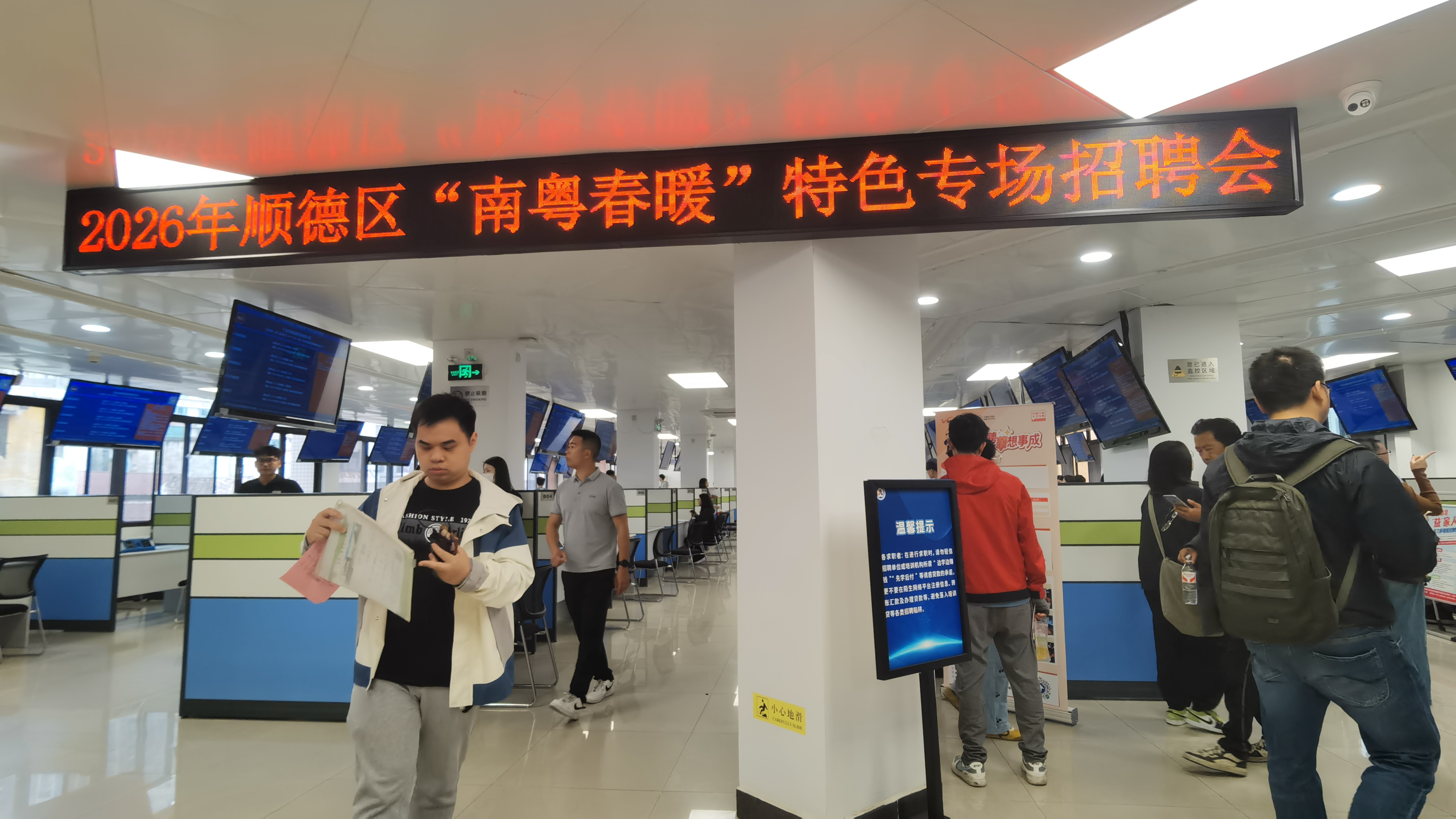 正月初十(2月26日),2026年顺德区“南粤春暖”特色专场招聘会在顺德区人力资源公共服务中心拉开帷幕。这场将持续三天的招聘会,提供3000多个优质岗位供求职者选择。“南粤春暖”这场招聘会“有滋有味”,首日初步达成就业意向490人次。