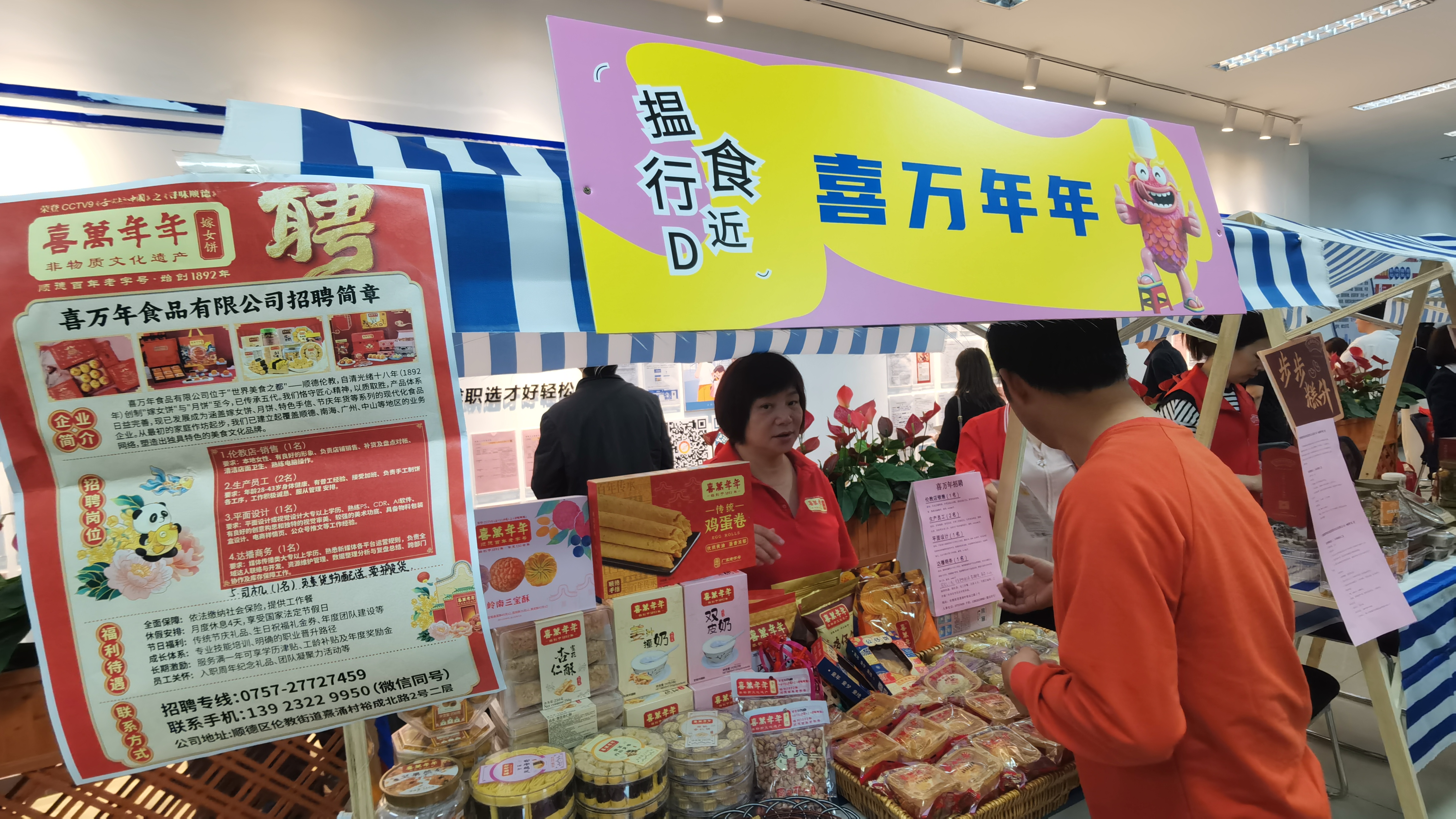 现场特设的“揾食行近D—沉浸式美食体验区”成为人气焦点。山姆会员店、仁信老铺、欢姐伦教糕、喜万年年、阿爆柠檬茶、顺德酒厂、益力多等顺德人家喻户晓的人气品牌齐齐助阵。其中,欢姐伦教糕、喜万年年因业务发展需要,也计划“招兵买马”。