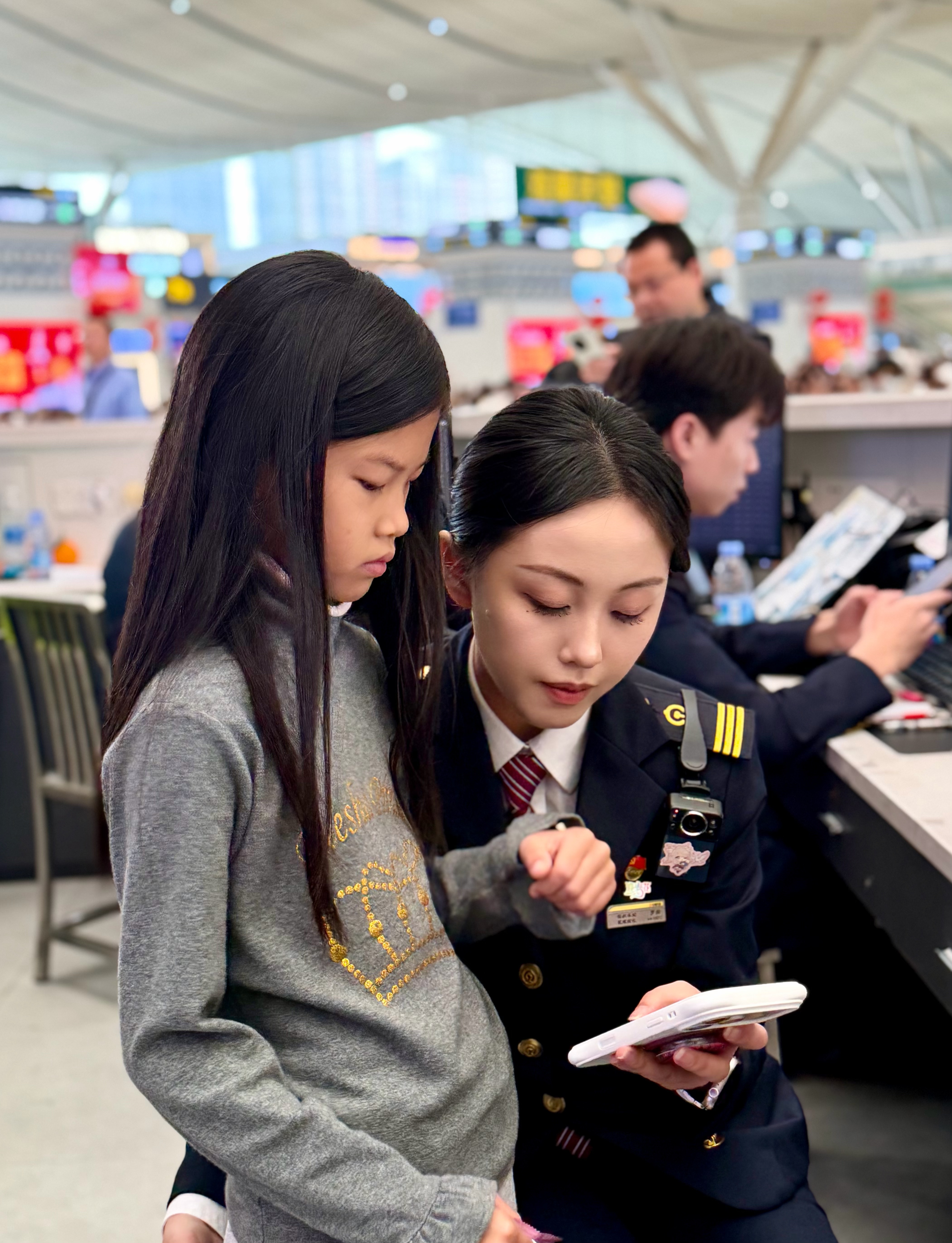 2月16日除夕夜,深圳北站依旧灯火通明。客运值班员蒋婉妮发现一名四五岁男孩独自站在角落,值班站长韦靓怡递上热水和饼干,温柔安抚。工作人员分工协作,很快在候车厅入口找到焦急寻子的夫妻。一家人激动相拥,竖起大拇指,为这份除夕夜的守护点赞。