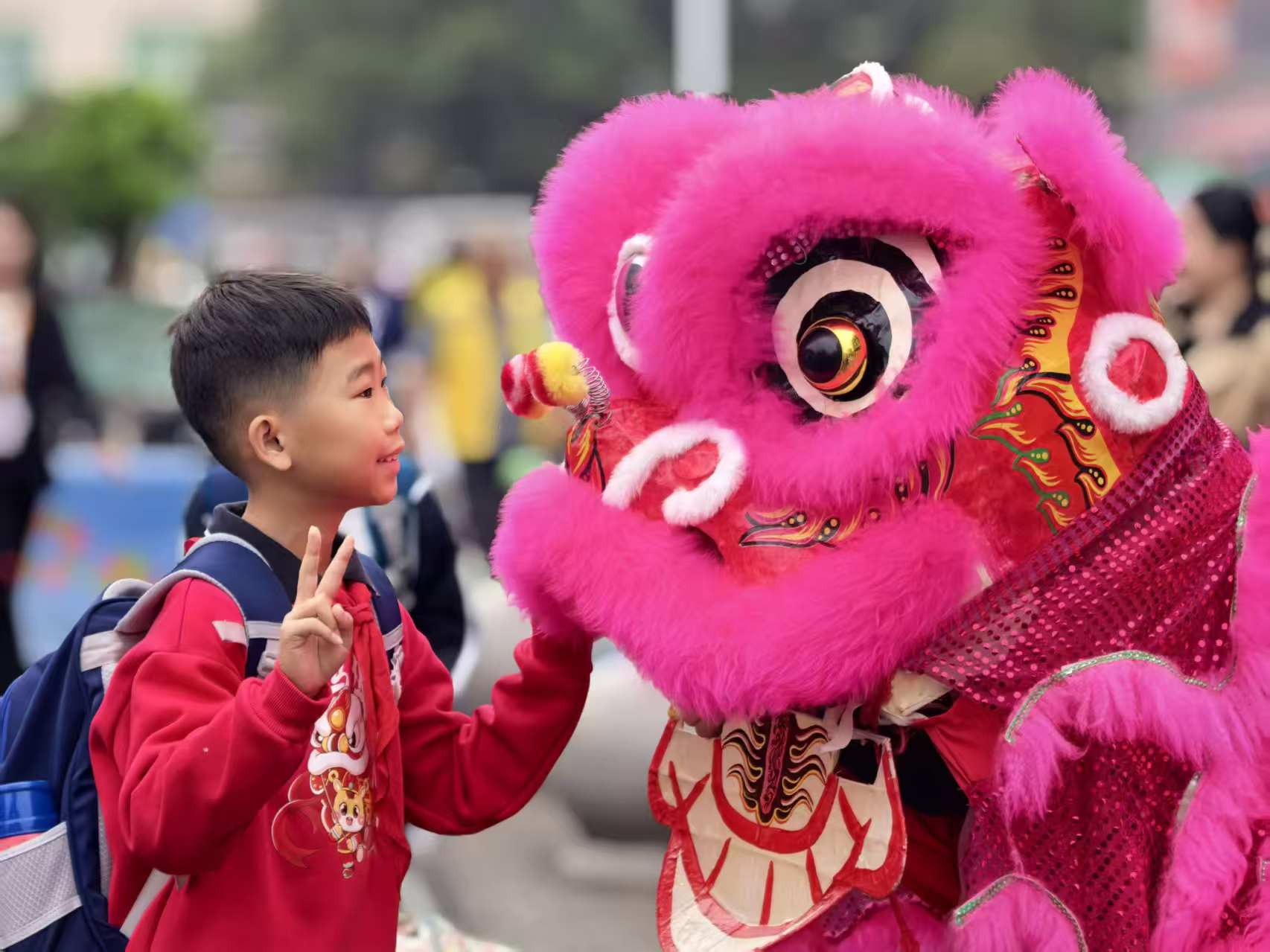 顺德容桂细滘小学:红衣遇红狮,开启活力新学年