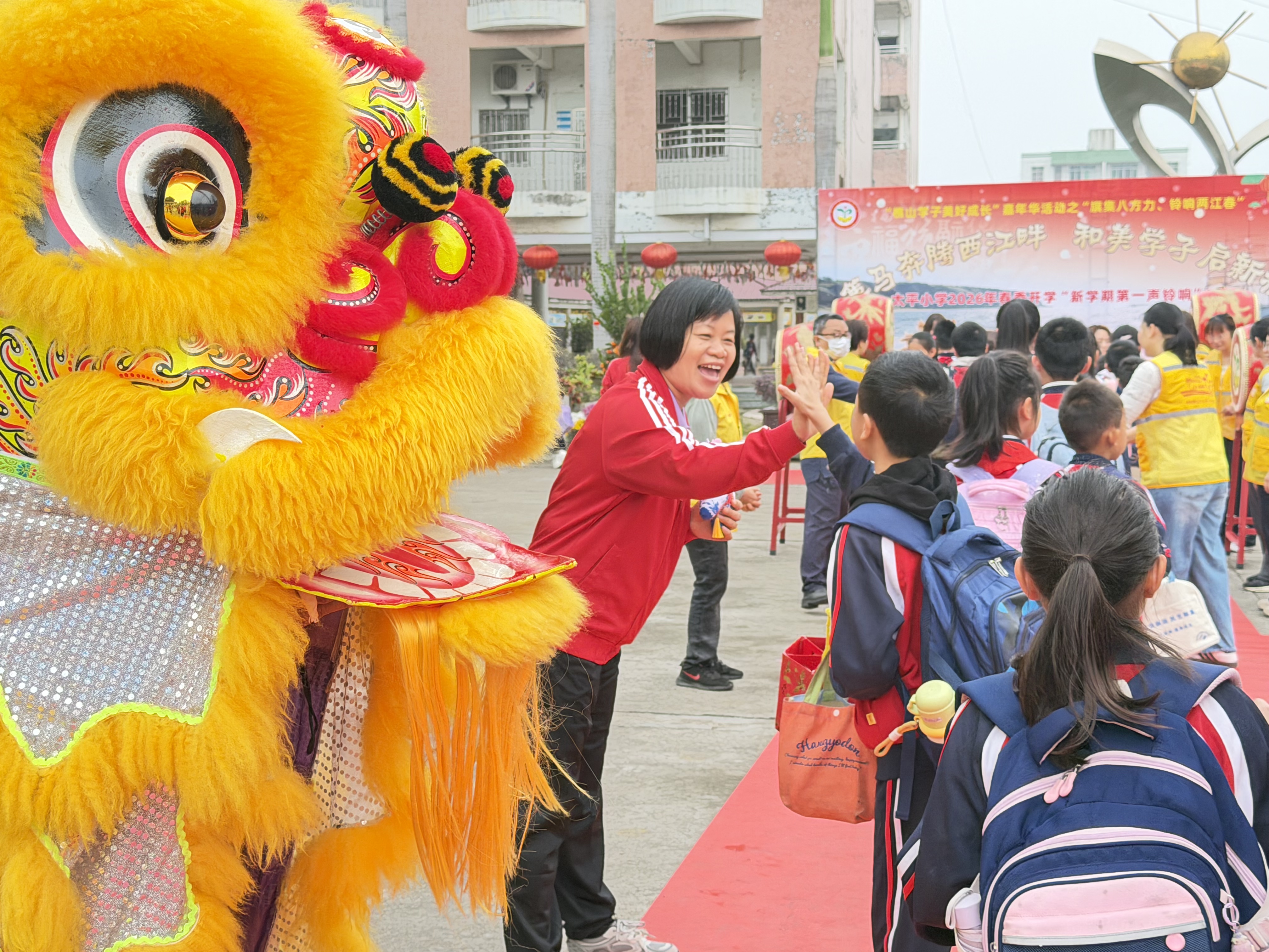 南海西樵镇太平小学:醒狮闹春迎开学 师生击掌启新程