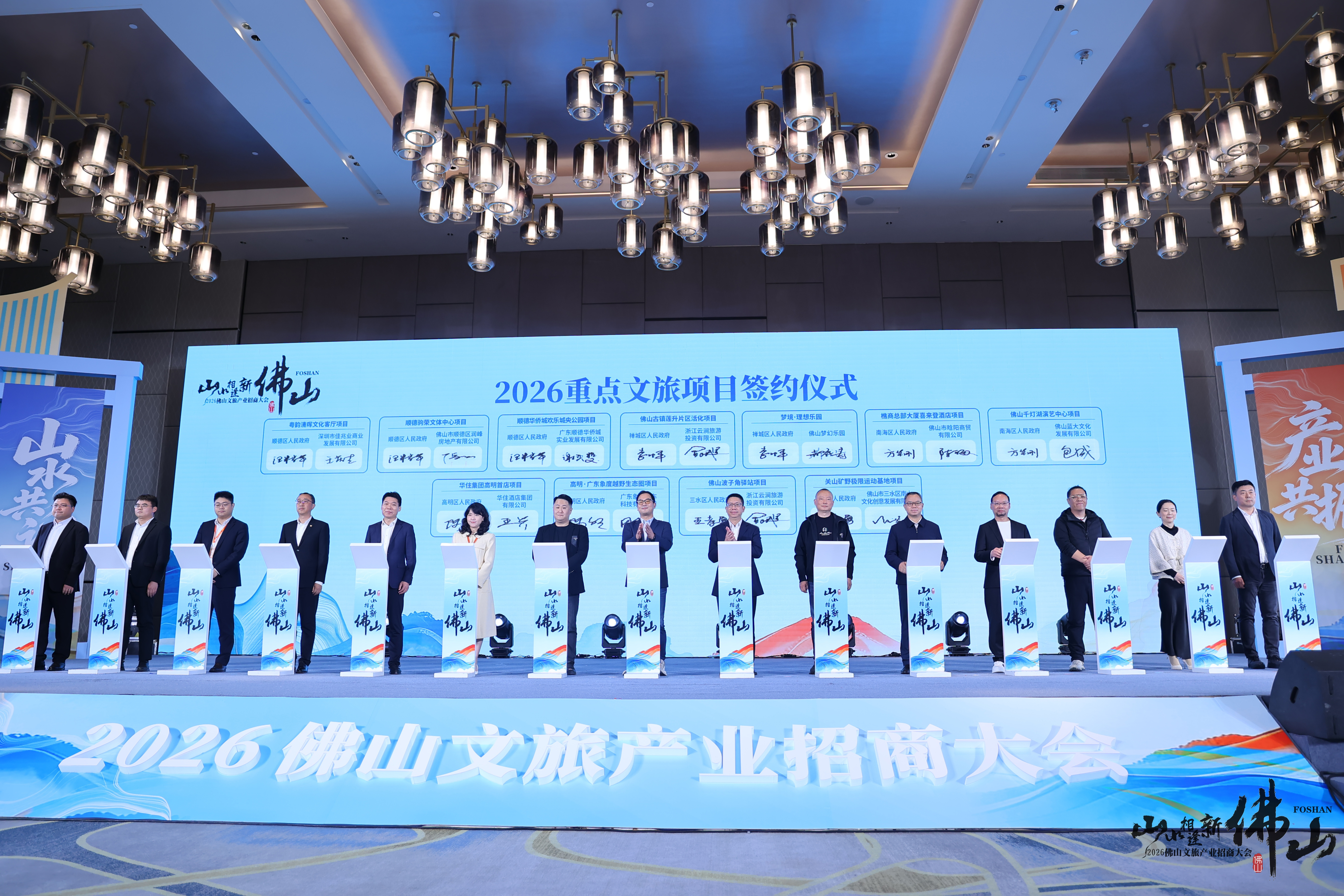 大会现场,12个重点文旅项目集中签约,覆盖佛山五区,总投资额超60亿元,涵盖文旅融合、业态创新、基础设施、户外运动等领域,再度彰显文旅企业对佛山未来的信心。其中,佛山市人民政府与广东省旅游控股集团有限公司签署战略合作协议,双方将围绕文旅产业升级与融合发展,聚焦文旅项目改造盘活等领域强强联手,携手开创佛山文旅产业发展新局面。