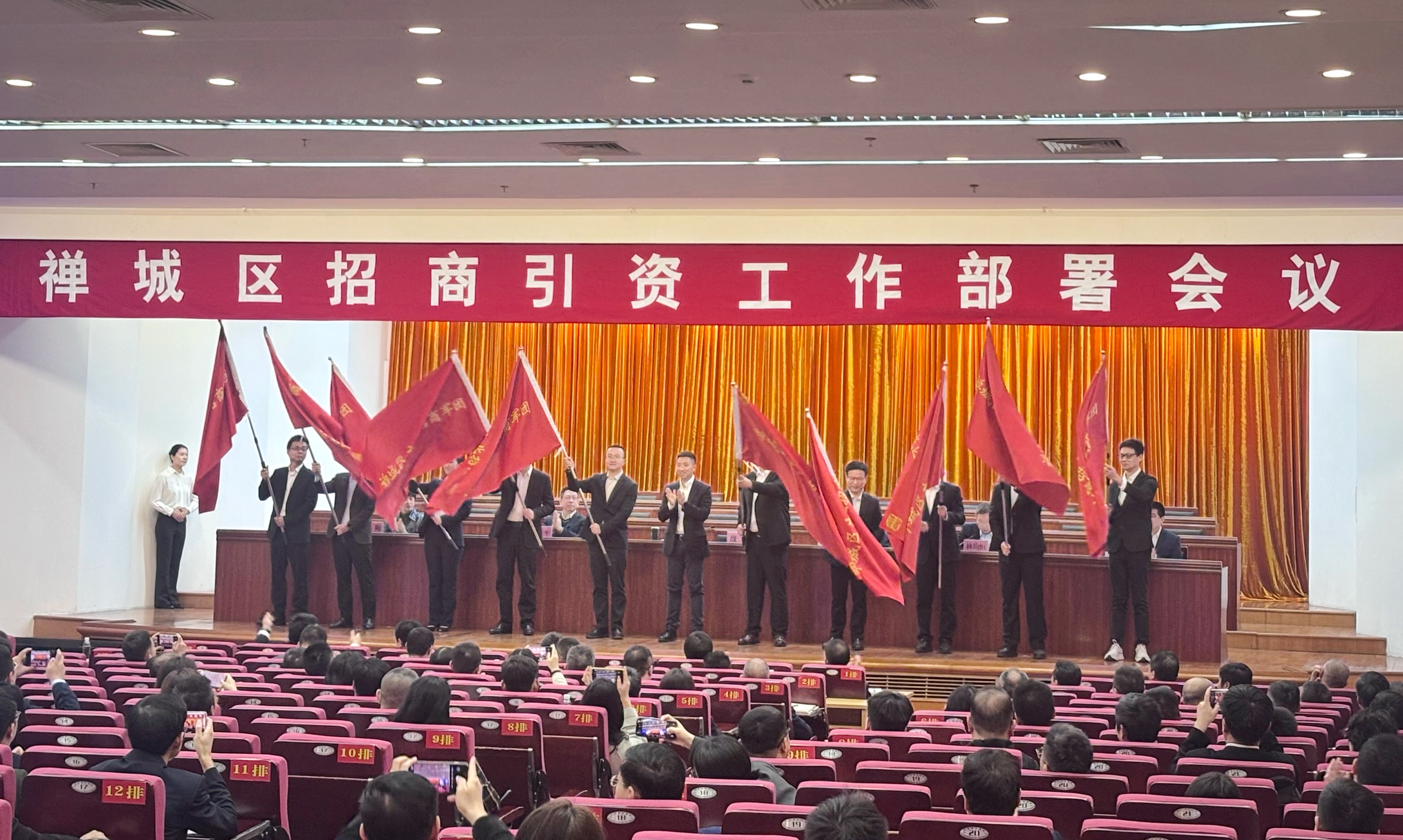 全区“招商军团”代表授旗仪式。/禅城融媒记者林晓平摄