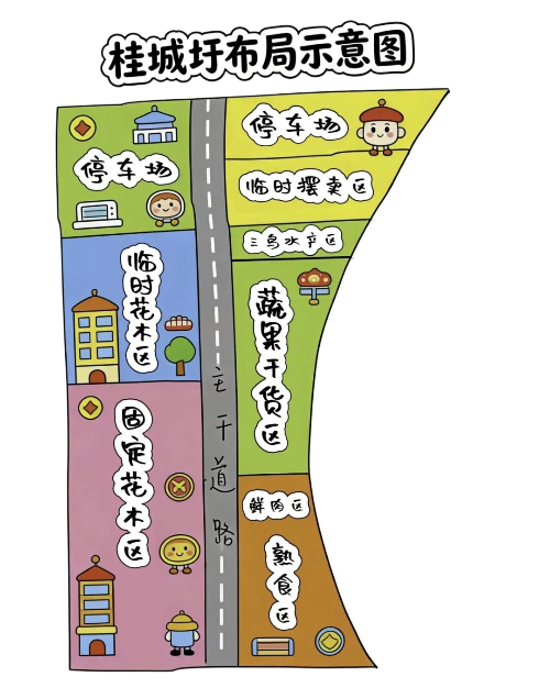 集市由43亩闲置旧地改造而成,分成干货区、鲜果区、三鸟区、鲜品汇、花木区、餐饮聚集区六大功能区,设有近250个摊位,凭借物美价廉的商品,吸引不少街坊前来趁墟,同时也受到年轻人的青睐。