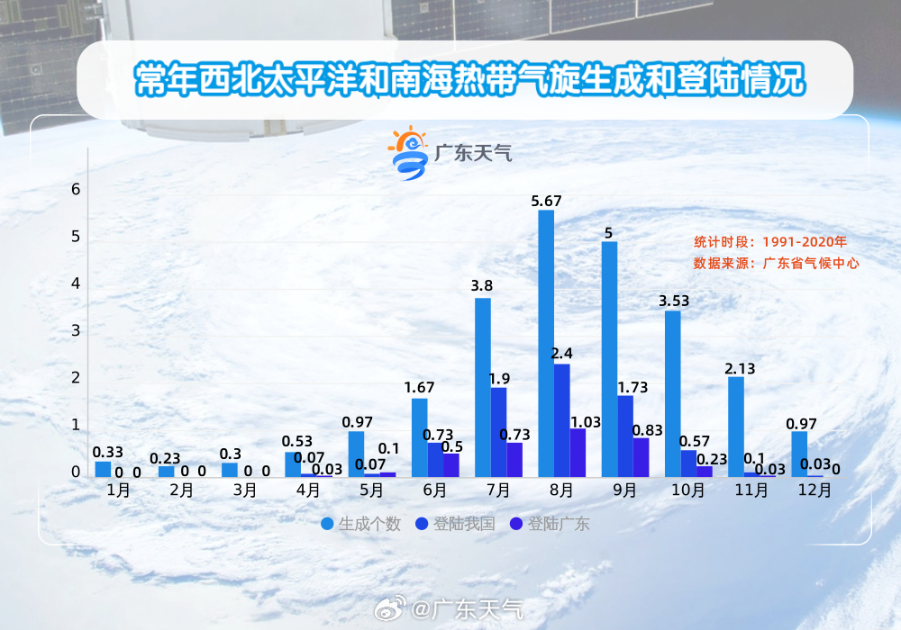 据中央气象台统计,常年首个台风(即当年西北太平洋和南海生成的第一个命名台风)的平均生成日期为3月25日。通常春季(1至3月)并非西北太平洋和南海的台风活跃期,热带洋面热力、动力条件等通常不足以持续支撑台风生成。