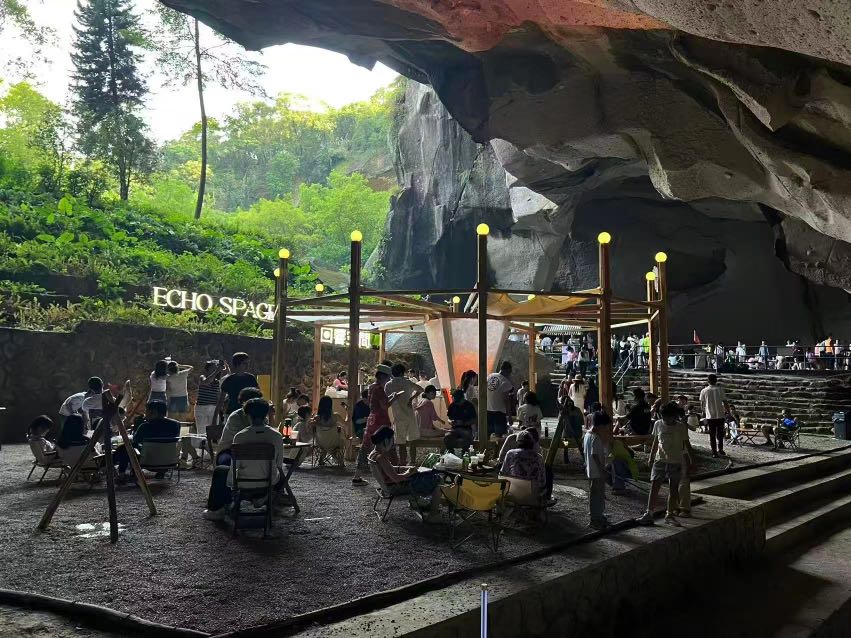 2025年,西樵山以更大魄力创新业态融合,从免门票政策中彻底打破“门票经济”的传统路径依赖,推动景区发展模式向体验消费、场景消费、全域消费深度转型。尤其在核心产品打造上,西樵山聚焦二次消费提质扩容,推动夜游项目、石燕岩“回响空间”岩洞咖啡、“飞阅中国”、树上森吧探险乐园、越野车基地等新业态迭代升级,形成沉浸式、体验式、运动型、休闲型多元叠加的消费矩阵,实现项目之间互补联动、游客停留时间延长、消费链条拉长。