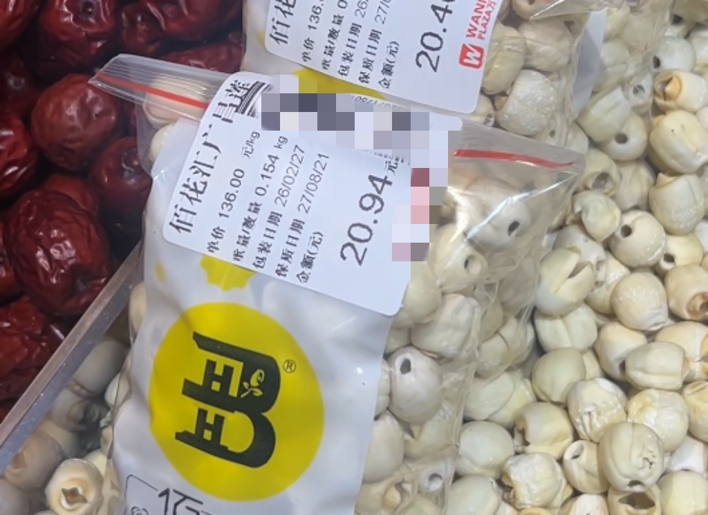 在顺德某大型超市干货区,一款罐装“广昌白莲”标价较高,而同区域散装货品也挂着“广昌白莲”的标签,但两者单价竟相差近2倍。记者对比发现,罐装莲子颗粒饱满、大小均匀,一端中心凸起呈棕褐色;而散装莲子表面较为光滑,一端中心凸起呈淡黄色。“同样是‘广昌白莲’,为何两者价格不同?”面对记者质疑,现场工作人员仅回应“不清楚”,无法解释同品名、同产地却价差悬殊的原因。