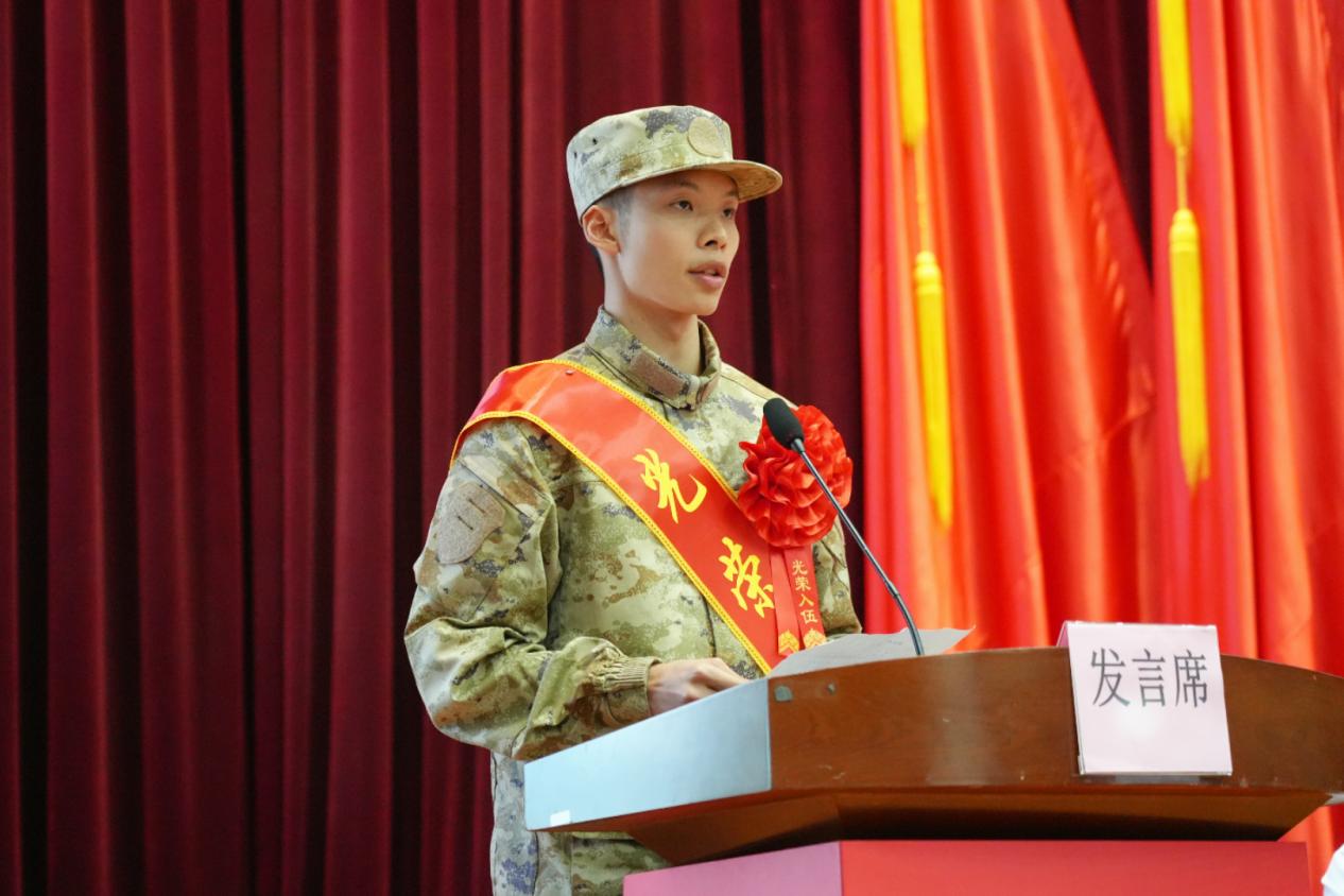 使命在肩,誓言铿锵。新兵代表潘俊豪语气激昂、郑重表态:“心之所向,行必能至;一人参军,全家荣光。我愿以青春之躯,守护家人、报效祖国!”他承诺,全体新兵定当勤学苦练、磨砺过硬本领,紧握钢枪、坚守战位哨位,以赤诚之心守护祖国安宁、守护人民幸福,用实际行动践行青春誓言。