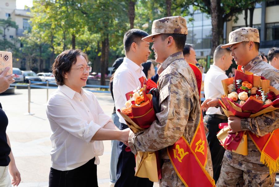 邓秀娟向新兵寄予三点期望:一是扎根军营、百炼成钢,发扬敢闯敢拼精神,不怕苦、不畏难,在部队千锤百炼、淬火成钢;二是立志成才、忠诚报国,勤学苦练、钻研本领,努力成为训练标兵、技术尖子;三是心系家乡、砥砺前行,不负家人与家乡期盼,以军人担当建功军营、荣耀故里。