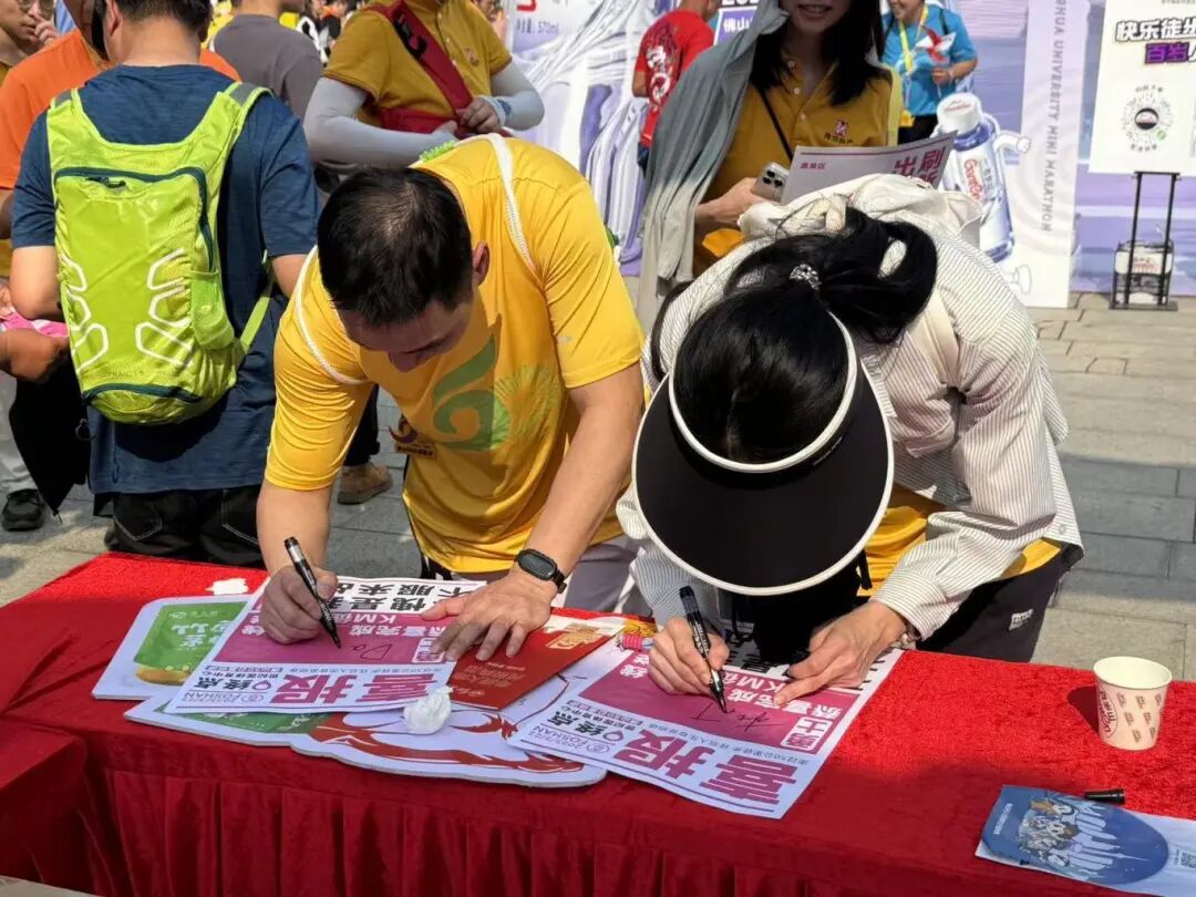抵达终点后,在官方签注点对面,认准荧光粉显眼包+“佛趣游”标识,一眼就能找到我们的摊位,冲就对了!