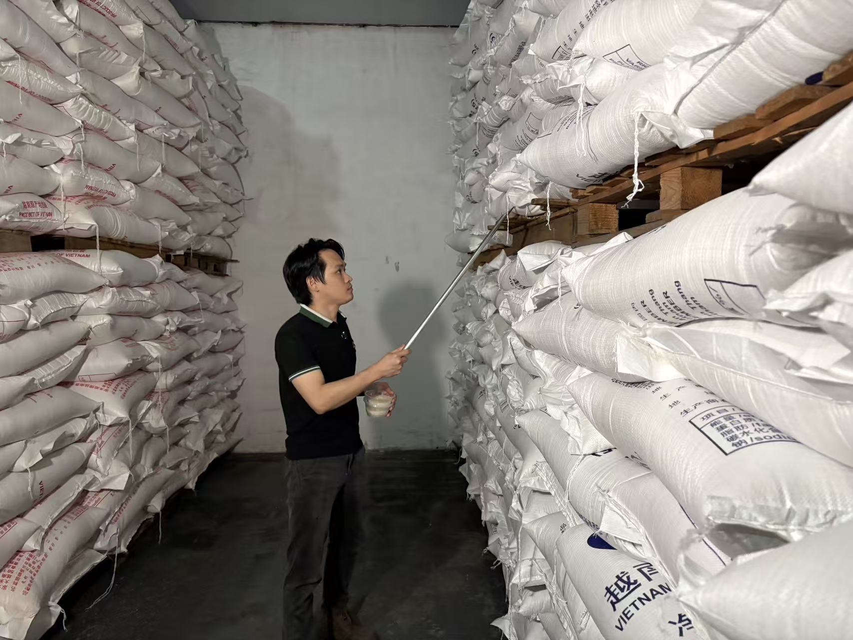 在明城镇粮食仓库,上百吨精加工大米整装待发,主要供应珠三角及珠海、深圳等地。粮食收购商林风介绍,华南家庭偏爱长粒稻米,丝苗米占仓库出货量大头。每一批次大米,他都用专用米签抽检:米签插入米袋,稻谷从中流出,直观把控品质。“万香丝苗米近两年种植最广,煮饭油润不粘连;19香粒型修长、饭味浓郁;南晶丝苗细长软糯,做煲仔饭、家庭用米都合适。”林风细数不同品种优势,道出丝苗米受宠的口感密码。