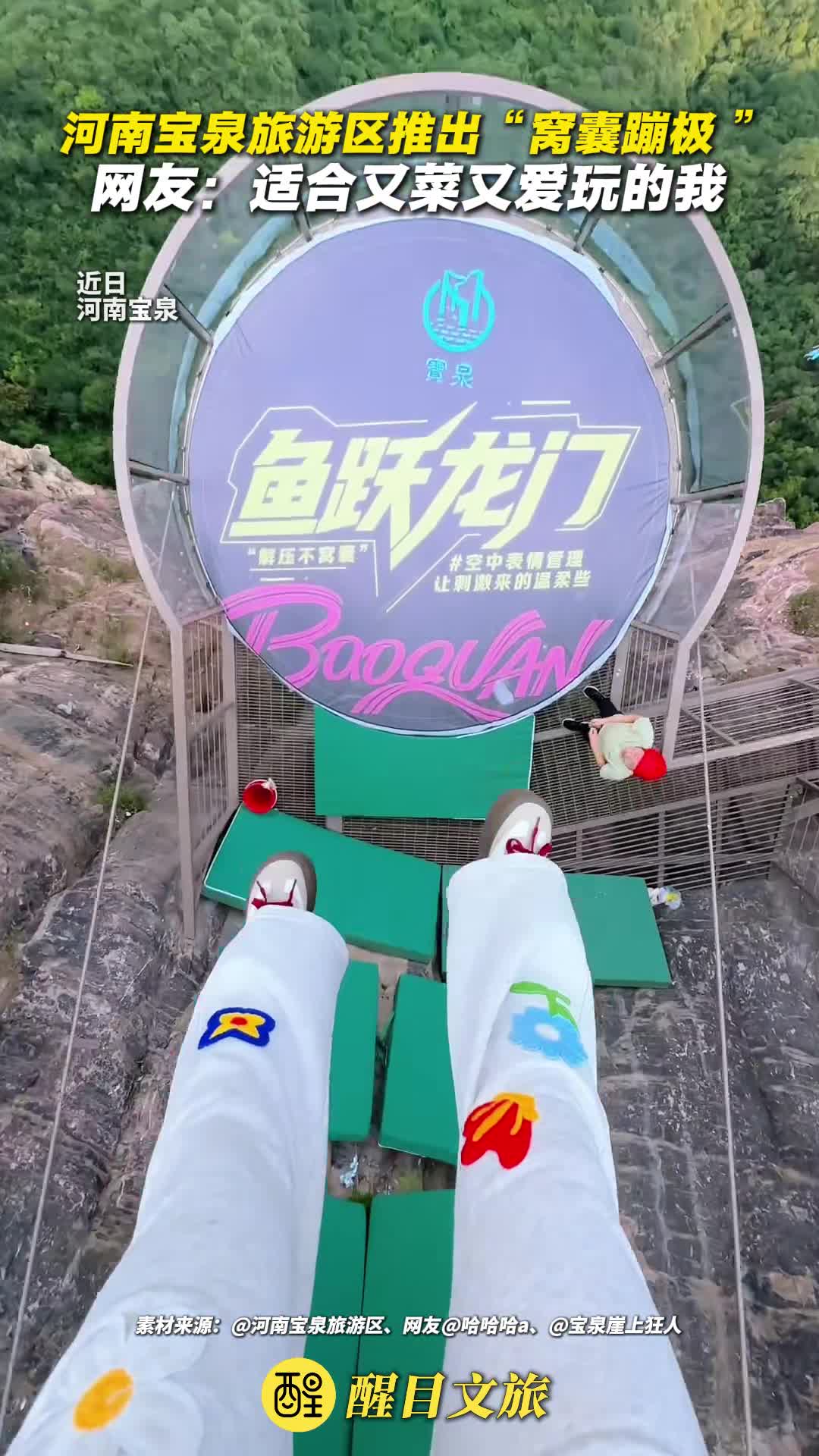 近日,河南宝泉旅游区推出“窝囊蹦极 ”。网友:适合又菜又爱玩的我。(编辑:胡煜;责编:周志钊;素材来源:@河南宝泉旅游区、网友@哈哈哈a、网友@宝泉崖上狂人)#宝泉旅游区 #蹦极 #窝囊蹦极
