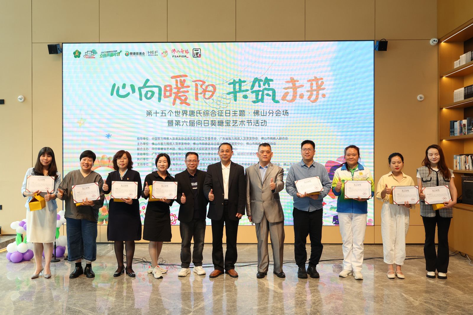 本次活动由中国智力残疾人及亲友协会唐氏综合征委员会、广东省智力残疾人及亲友协会、佛山市残疾人联合会指导,佛山市智力残疾人及亲友协会、佛山市顺德区向日葵社会工作服务中心、佛山市残疾人康复协会、向日葵糖宝艺术团、佛山市顺德区大良街道太阳妈妈儿童康复发展中心联合主办,并得到了广东碧丽饮水设备有限公司、顺德区社会治理众创共善计划、顺德慈善会·和的爱心基金、顺德区龙江实验幼儿园等单位及黎萌等公益热心人士的大力资助,以及顺德华侨城欢乐海岸plus、佛山市顺德区启智学校等十余家单位的倾力支持。