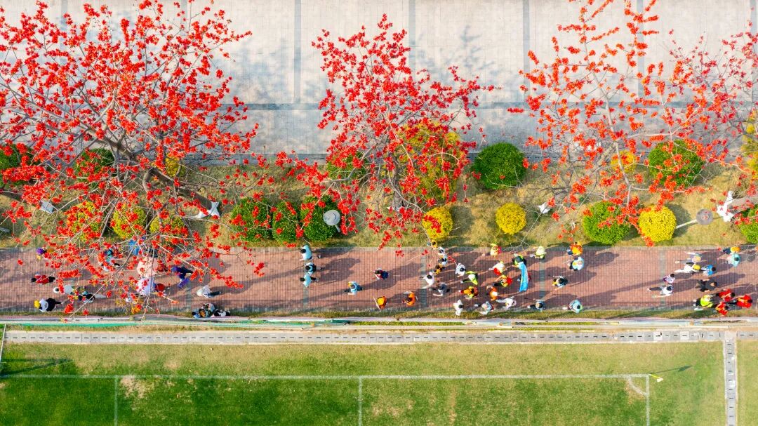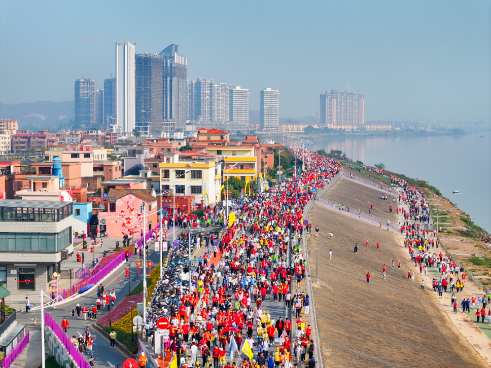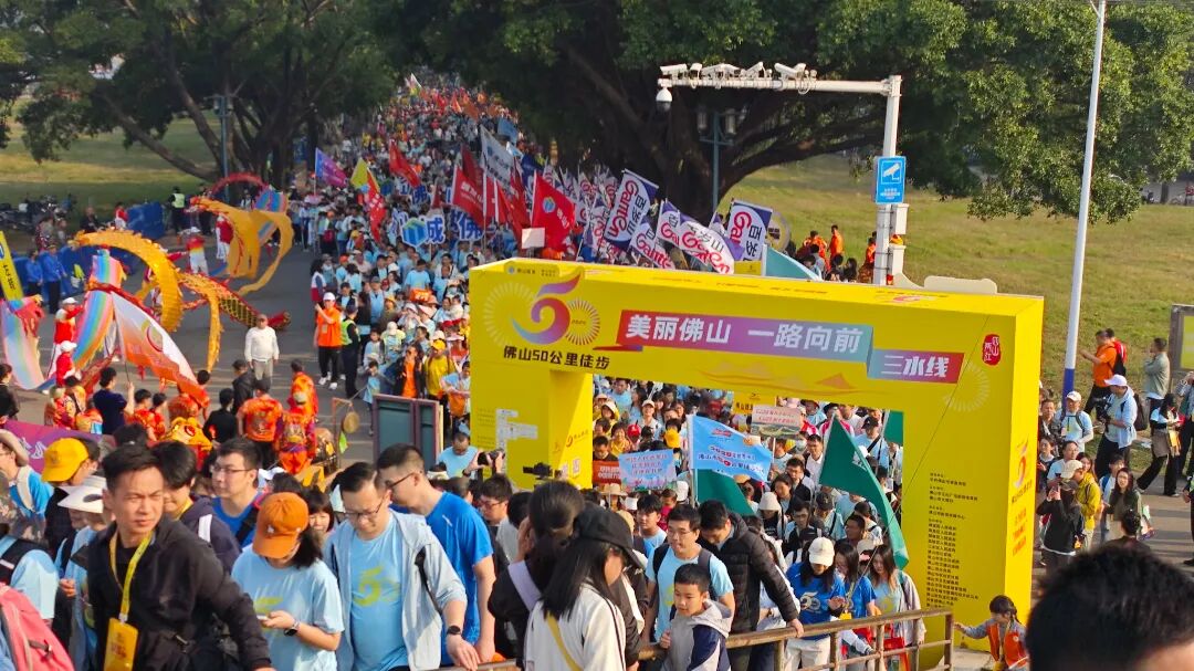 通过直播镜头为每一位徒步参与者加油鼓劲