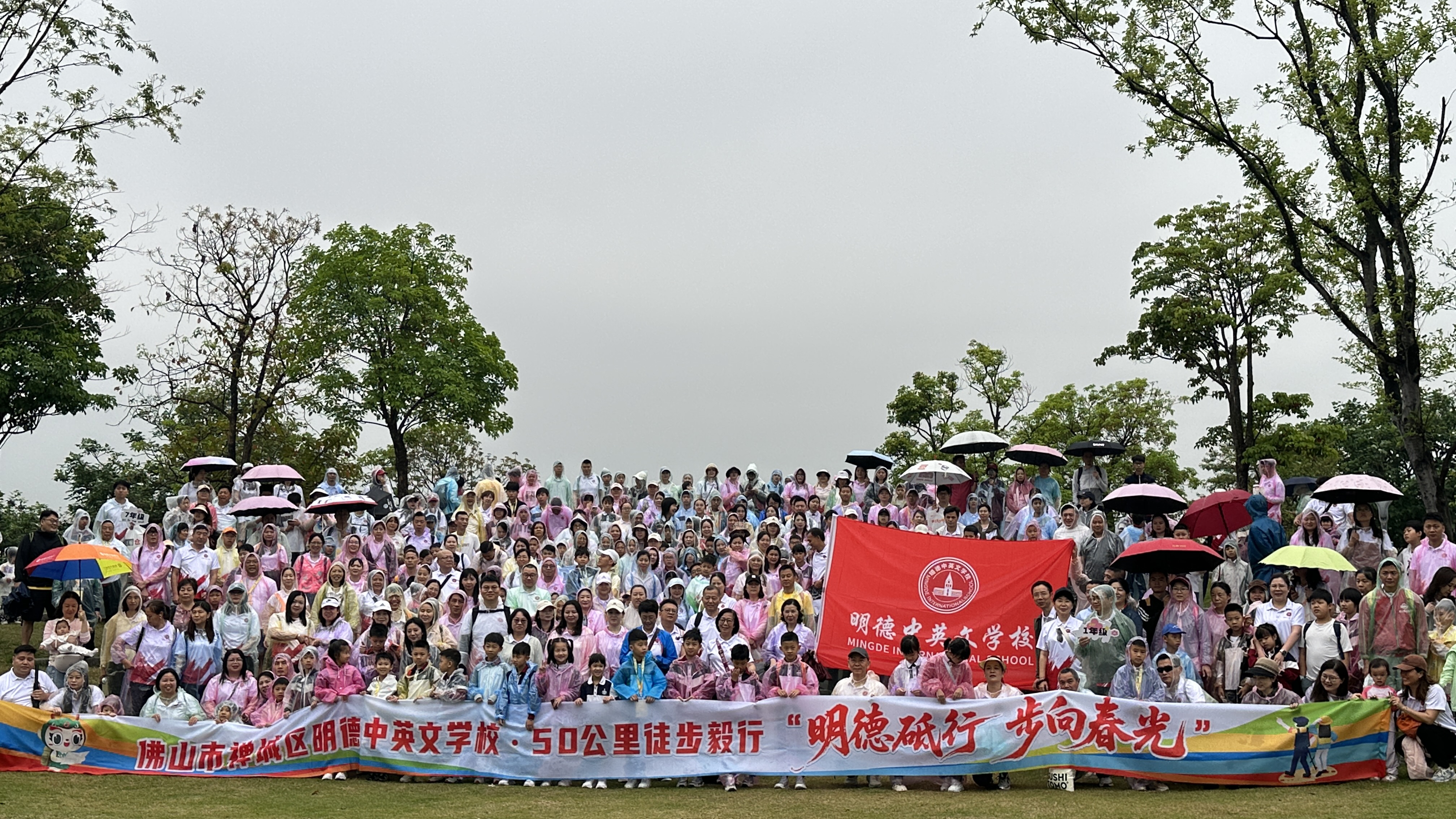 明德中英文学校首次组织师生、家长共同参与佛山50公里徒步活动,400余名明德人以脚步丈量春日盛景,用陪伴书写家校温情,在行走中践行健康生活理念,为绿色佛山注入青春活力。