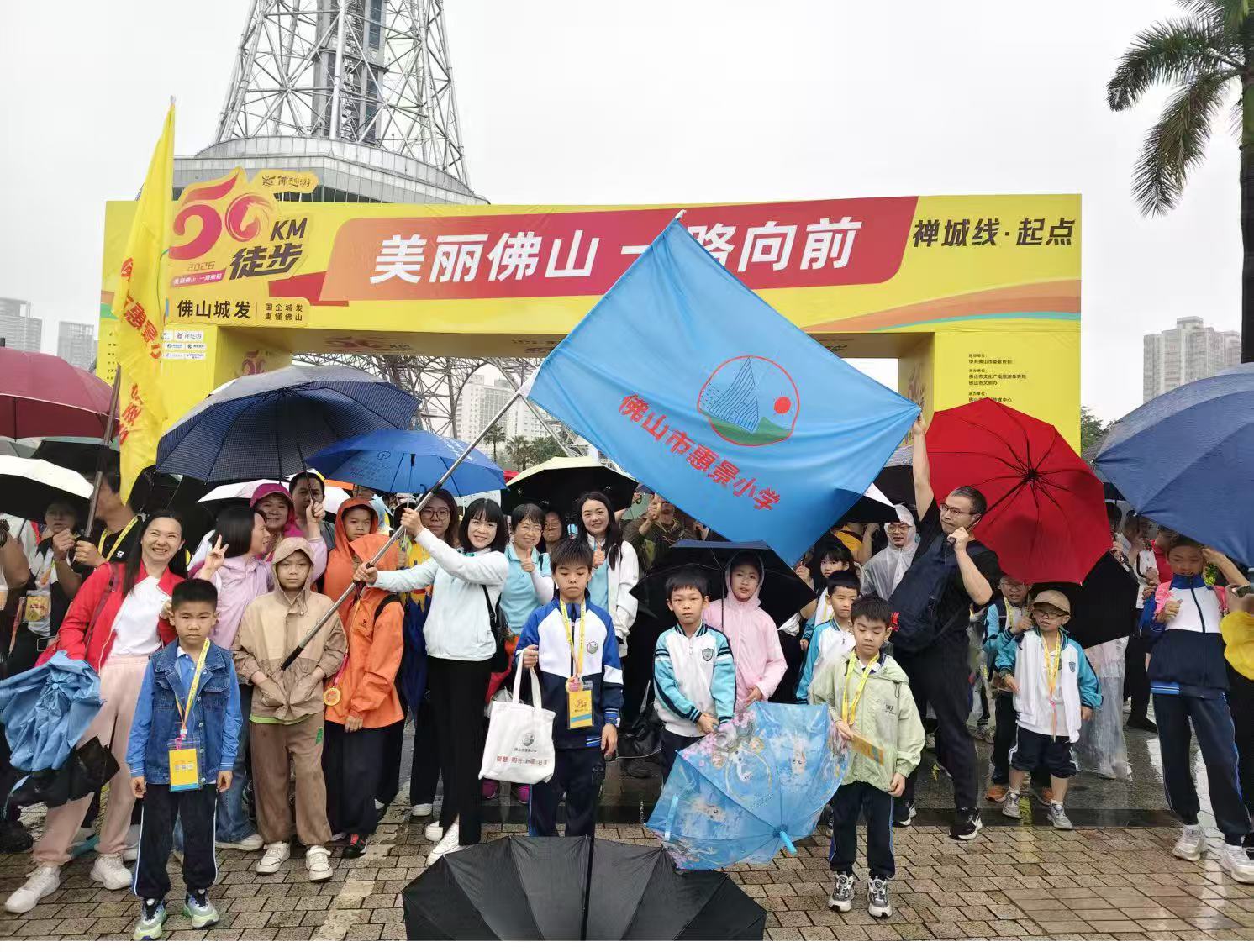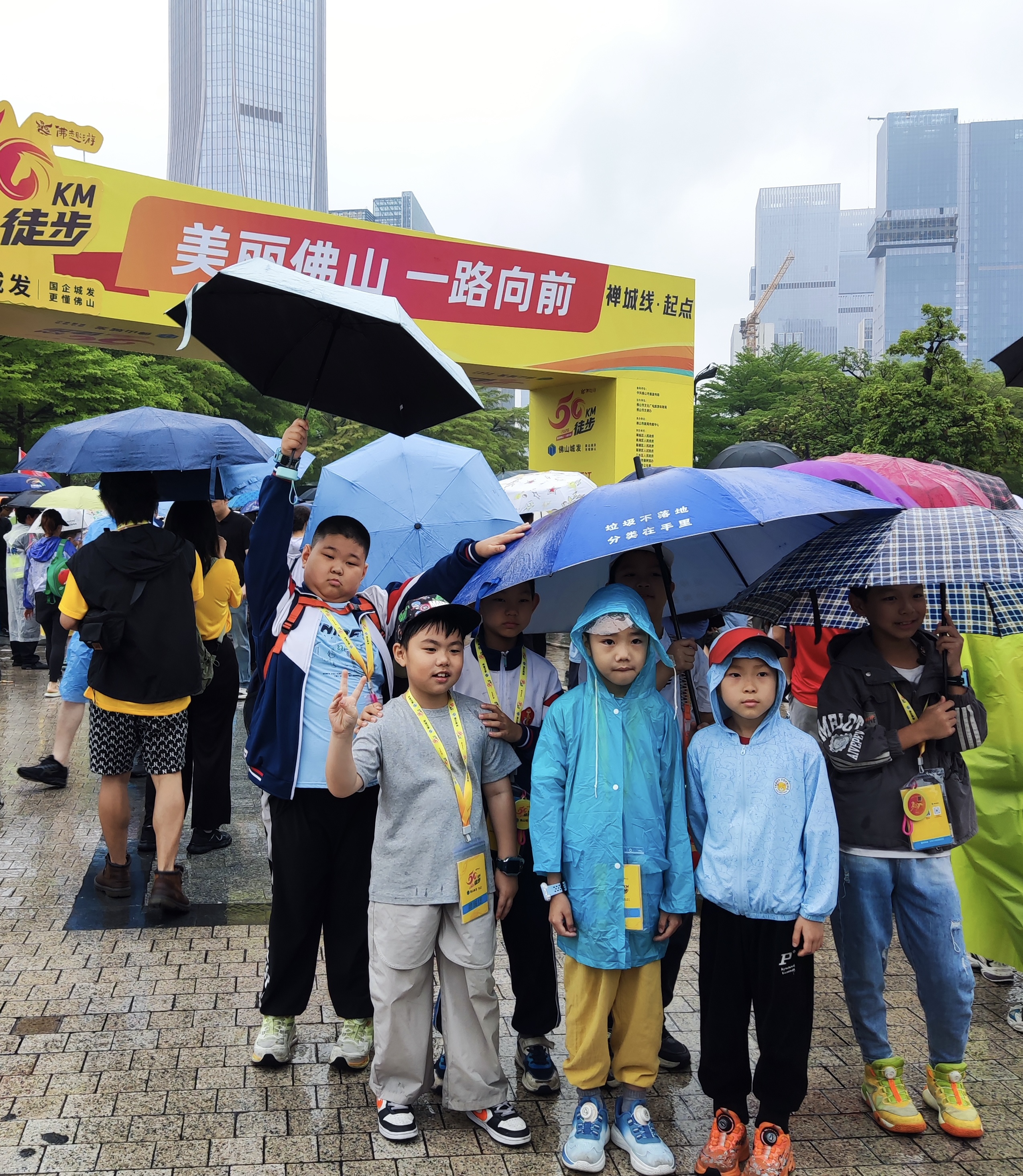 佛山市禅城区澜石小学出征佛山50公里徒步,“澜彩绘梦”在风雨中闪耀。