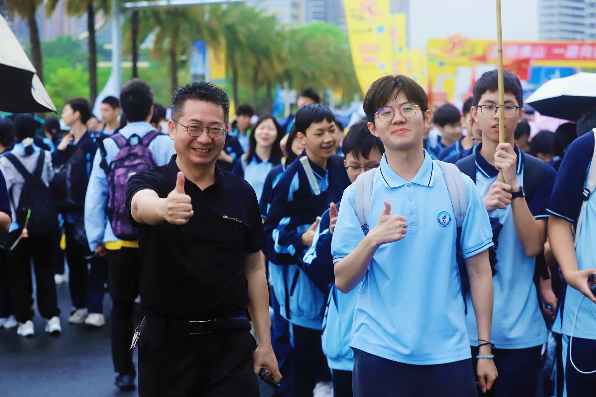 石门中学高二年级1400多位师生和家长参加佛山市50公里徒步南海线,无惧风雨,一路向前。以青春脚步丈量城市美景,用坚持与协作展现石中少年昂扬风貌。