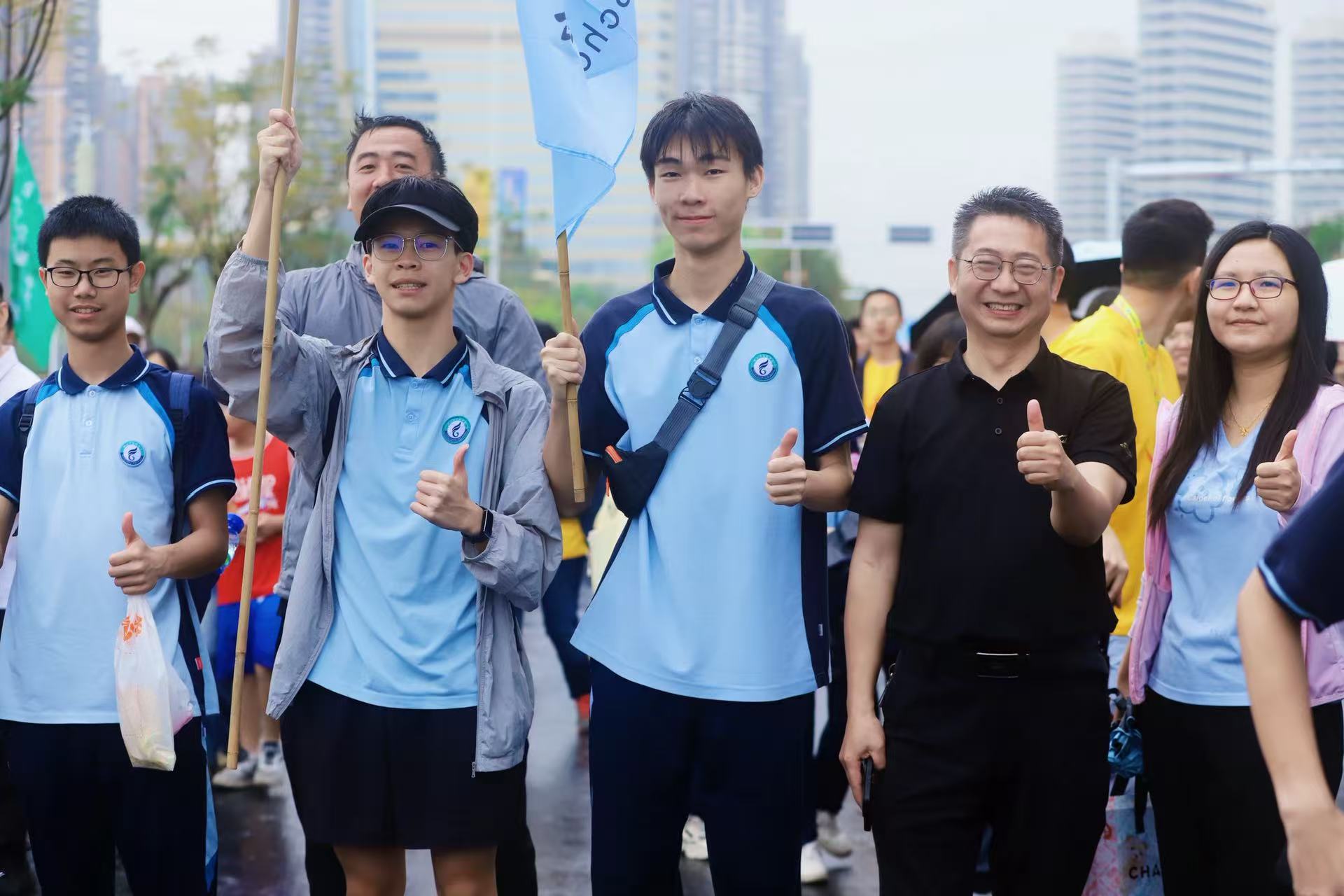 中黄星瑜港澳子弟学校的师生代表与家长们以饱满热情奔赴这场春日之约。一路携手相伴,向着终点世纪莲体育中心前行。
