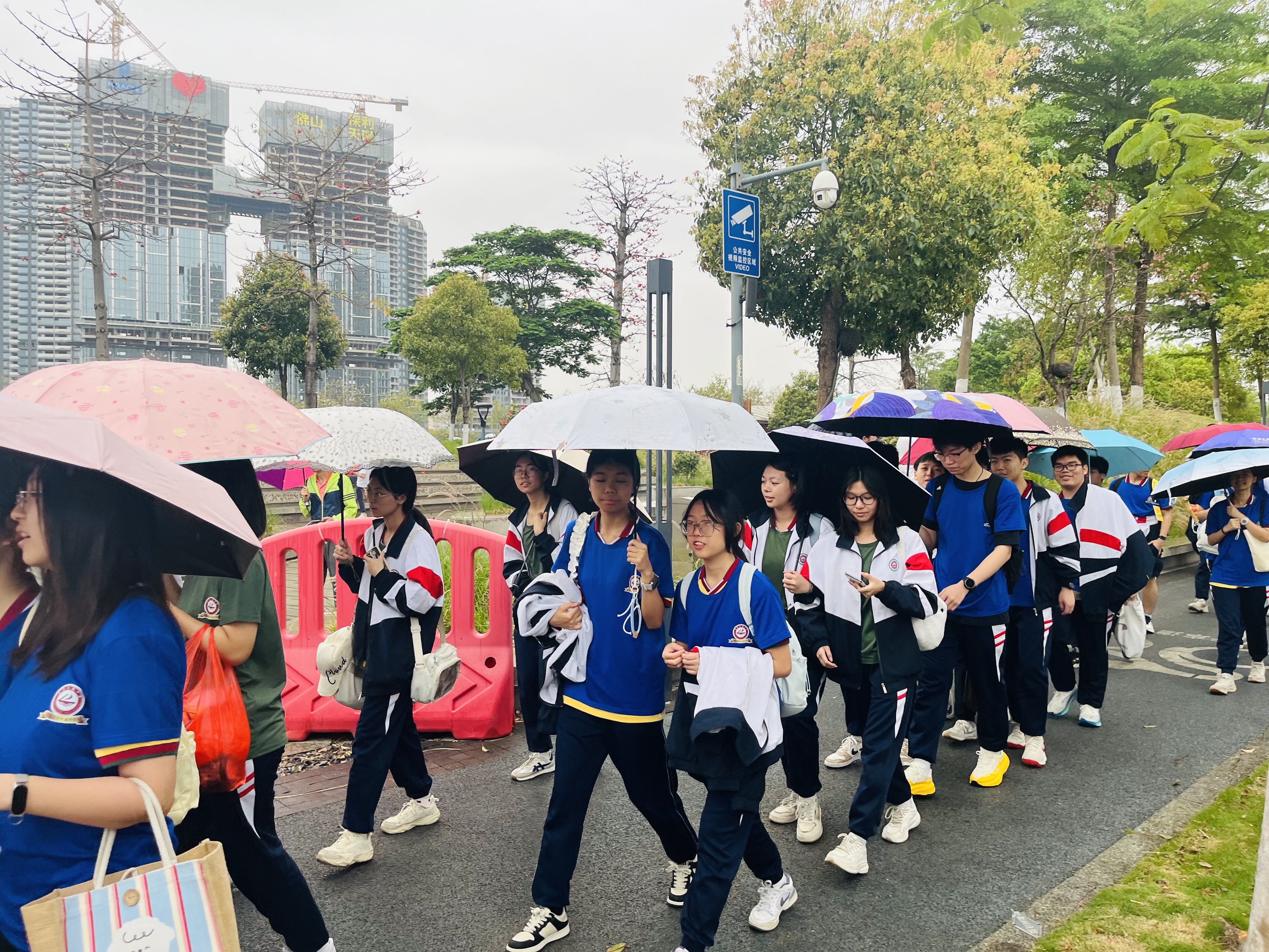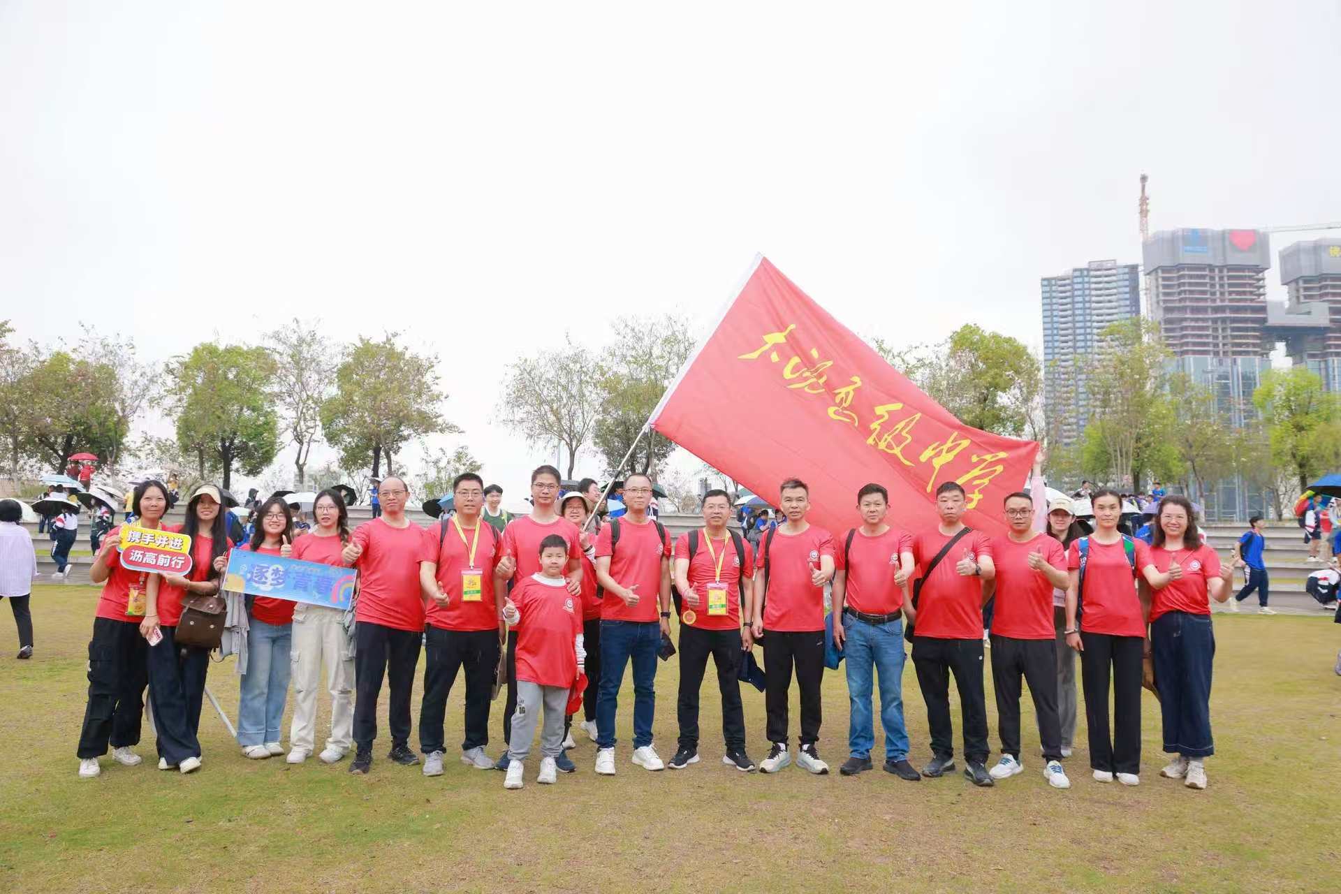 徒步期间,由学校领导班子领航、班主任陪护、家长志愿者同行,师生同心、家校携手,在行走中一起感受佛山城市新貌,在同行中凝聚奋进力量。