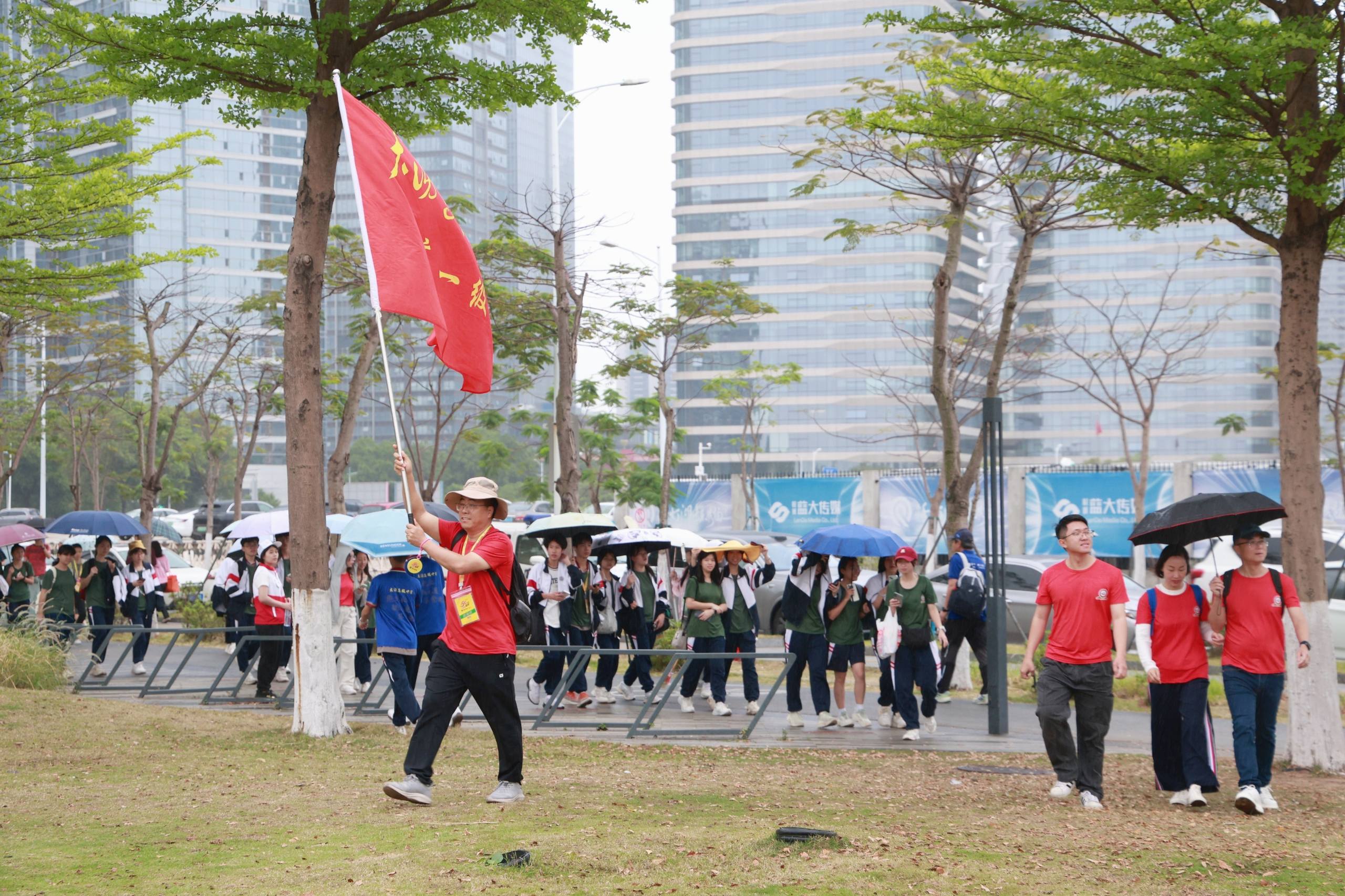 钟海明还向全体师生送上“三把行军钥匙”:一是智慧前行,科学分配体力、合理规划行程,及时调整节奏;二是携手共进,相互照应、彼此鼓励,凝聚团队力量;三是心怀热爱,用心感受城市之美,珍惜同行时光,收获温暖与成长。他还寄语大家文明徒步,在风雨中保持从容,在疲惫时坚守初心,在终点一起见证超越自我的精彩!