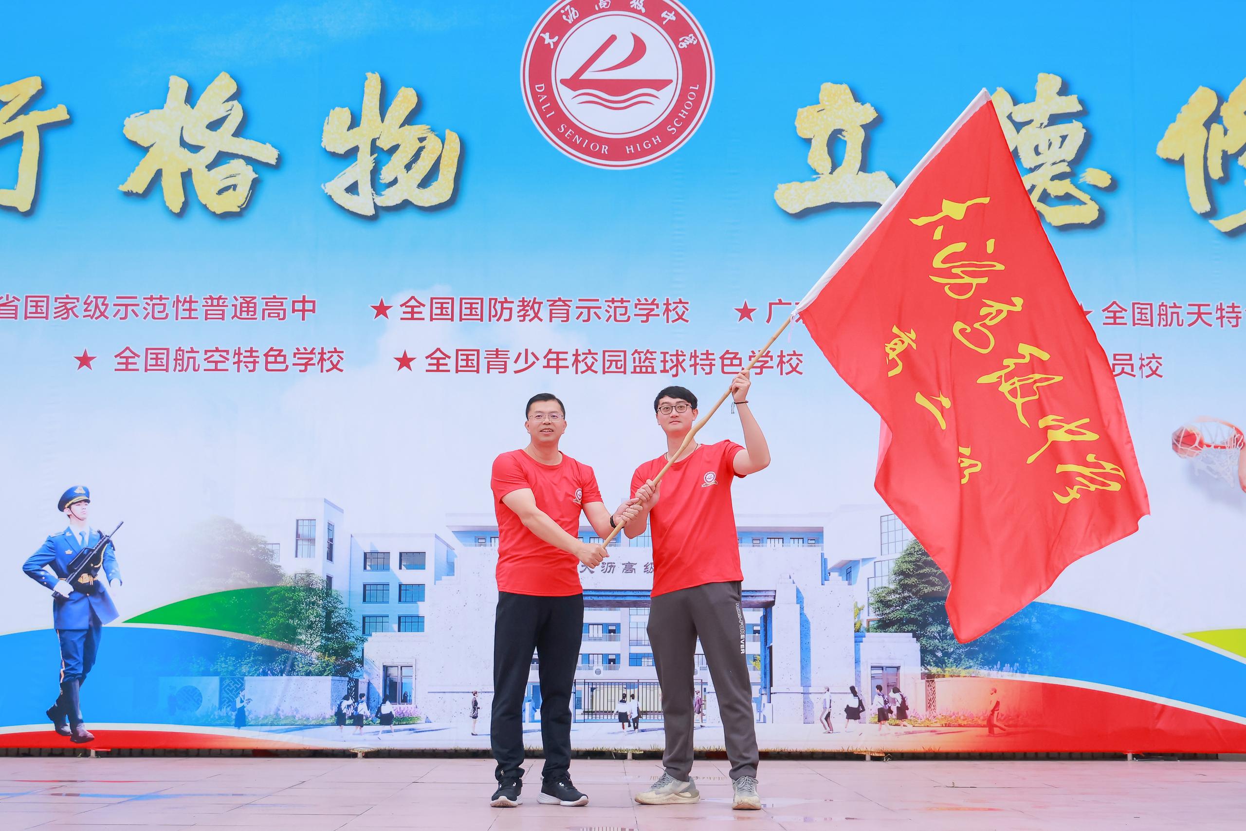 授旗仪式后,全场齐唱军歌,热血氛围高涨。师生们高举队旗,以饱满精神去挑战自我。