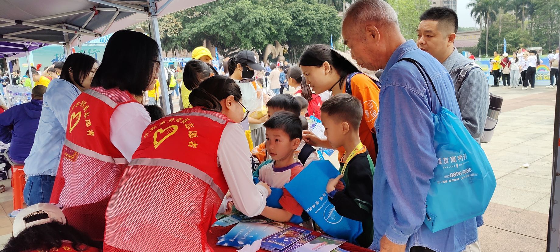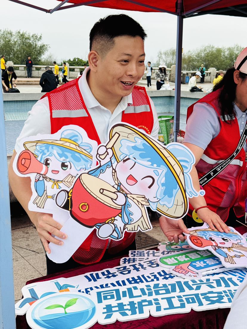 现场最受欢迎的“明星”,莫过于佛山水务IP形象“小禹”。今年,四位装扮成“小禹”的志愿者穿梭在人群中,吸引大人小孩纷纷上前合影。“小禹”们手持宣传牌,用生动活泼的方式呼吁大家保护母亲河,吸引了大量目光,让水务宣传变得亲切又有趣。
