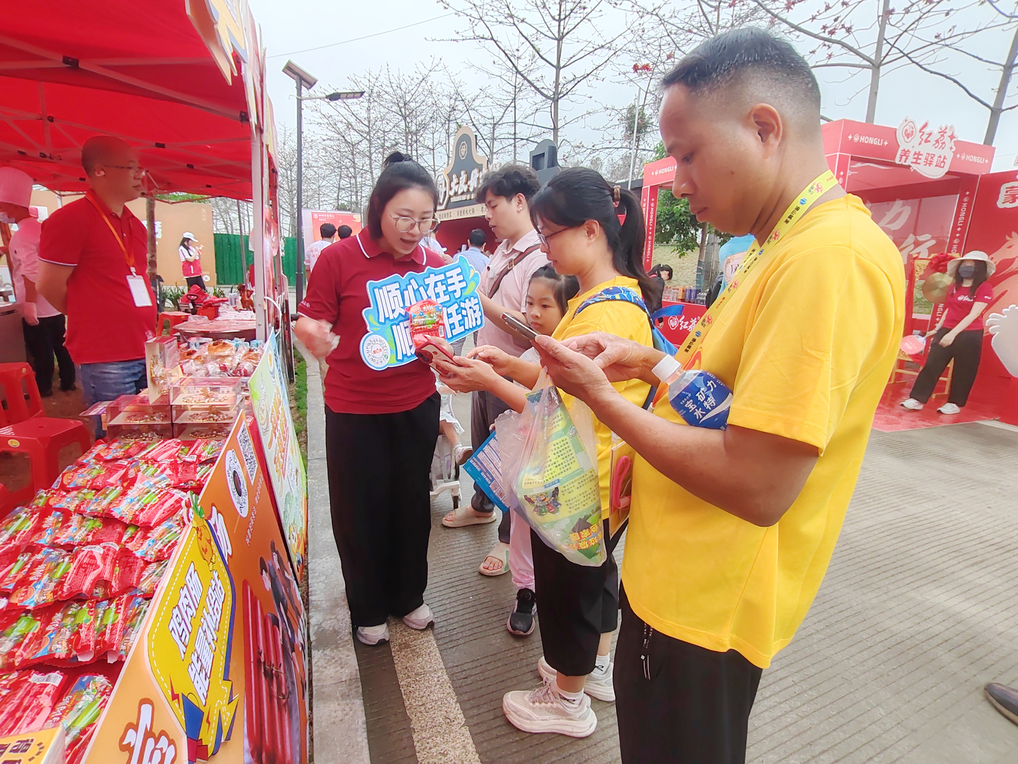 在起点华侨城停车场摊位,扫码关注“顺心伴”小程序即可免费领取麦片和王老吉,吸引了大量市民驻足。而沿线各签注点的福利更是层层递进:在二签乌洲水闸,市民不仅可以现场低价购买清晖双皮奶酥、醋尚王苹果醋和顺泰鸡肉肠,还能扫码免费领取大笑鸡仔饼;在三签西海亲水平台和四签君兰海岸公园,水晶双子莲子淮山面免费派送,其健康食养的理念受到不少徒步家庭的好评。“正好走累了需要补充能量,‘顺心伴’摊位很贴心,领取的东西直接可在路上边吃边走。”带着孩子徒步的市民李女士说。