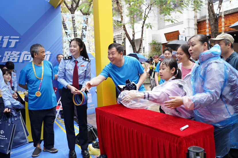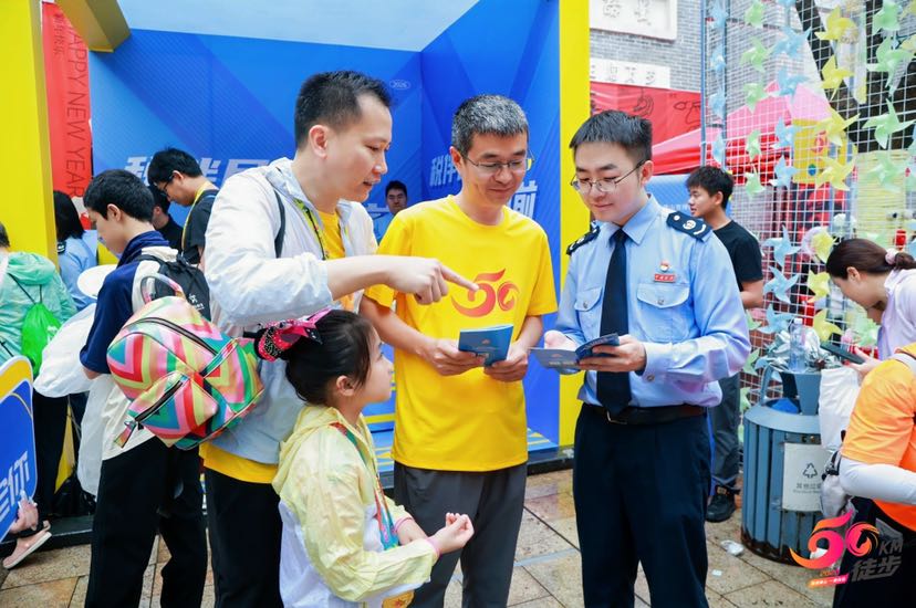 除了涉税咨询,“税伴加油站”还推出了集趣味性与实用性于一体的“税法圈圈乐”互动游戏吸引众多徒步者驻足挑战,在欢声笑语中传递知识;政策咨询台前,税务人员耐心为徒步市民答疑,提供精准指导。