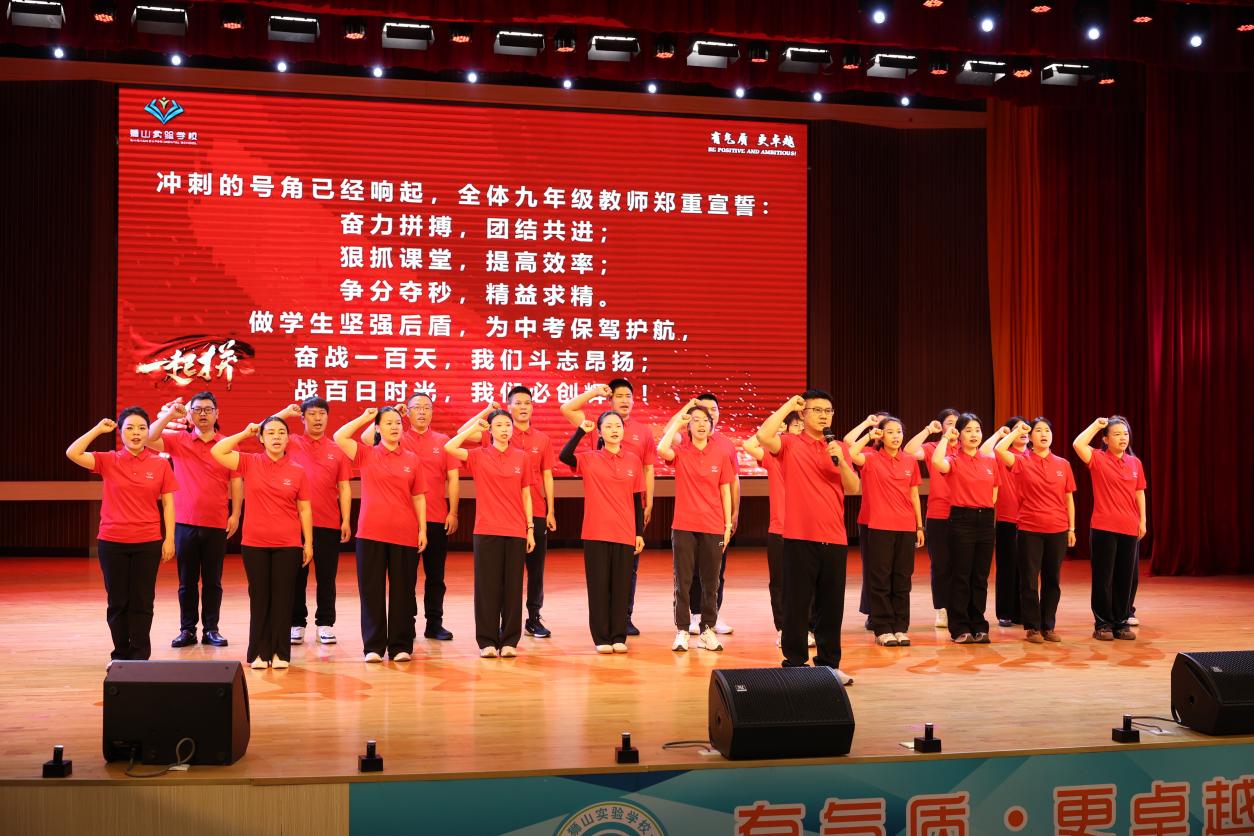 随后,全体初三教师集体庄严宣誓,承诺坚守岗位、全力护航,做学子备考路上的坚强后盾,以饱满斗志陪伴学子奋战百日。