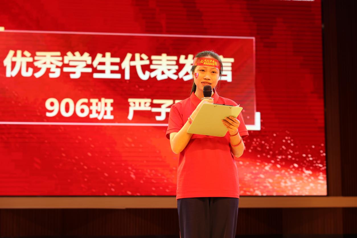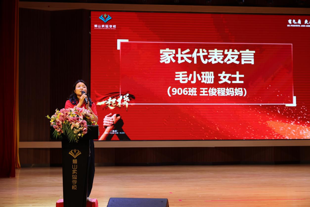 家校同心是本次誓师大会的重要亮点。家长代表毛小珊女士现场温情寄语,呼吁家长做好孩子的“压力过滤器”,引导学子理性看待中考,勉励大家珍惜时光、踏实奋进、心怀感恩。