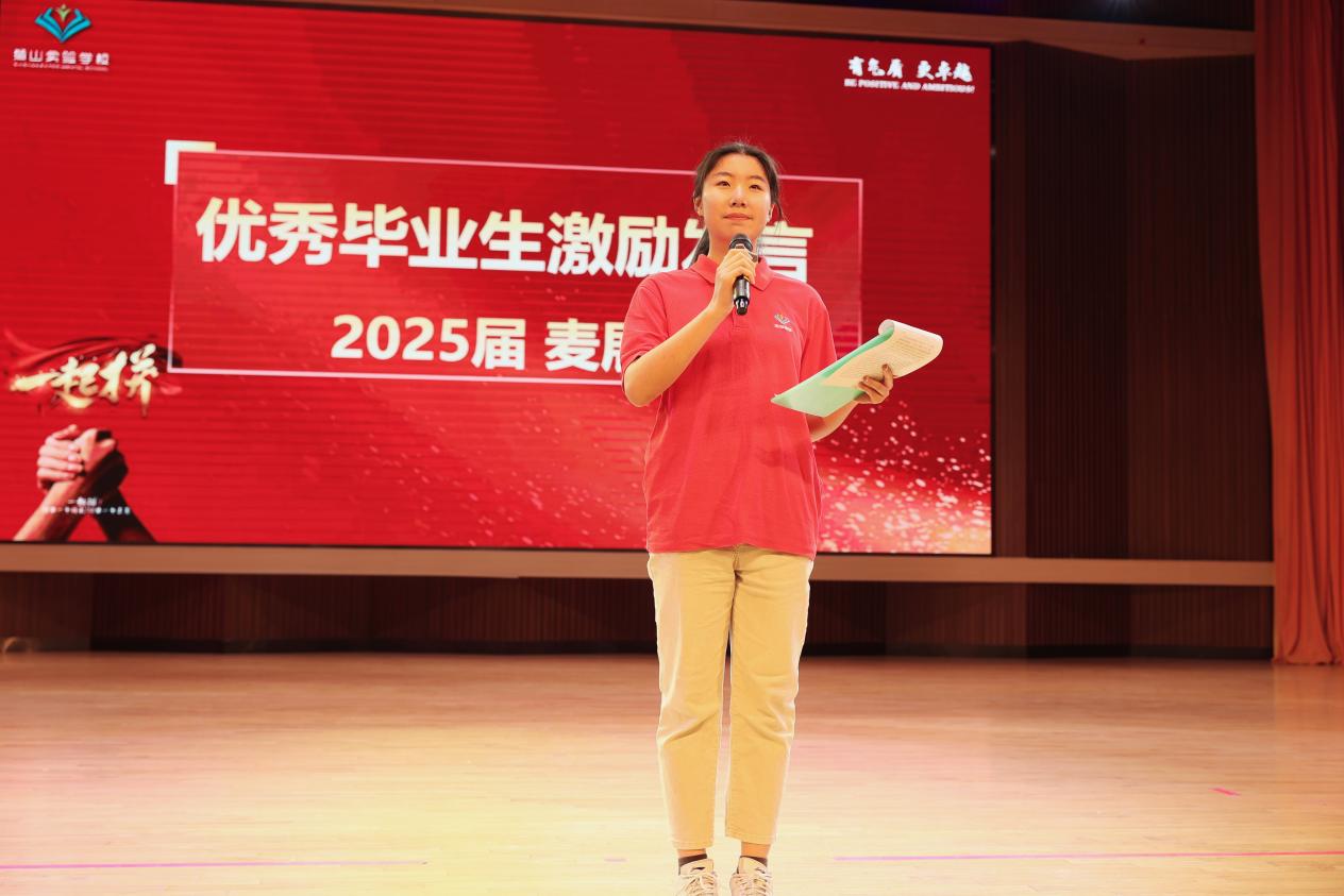 学生代表严子玲结合三年求学经历,分享课堂钻研、错题攻坚的点滴感悟,号召全体同窗摒除杂念、深耕细节、互帮互助,彰显狮实学子的昂扬风貌。