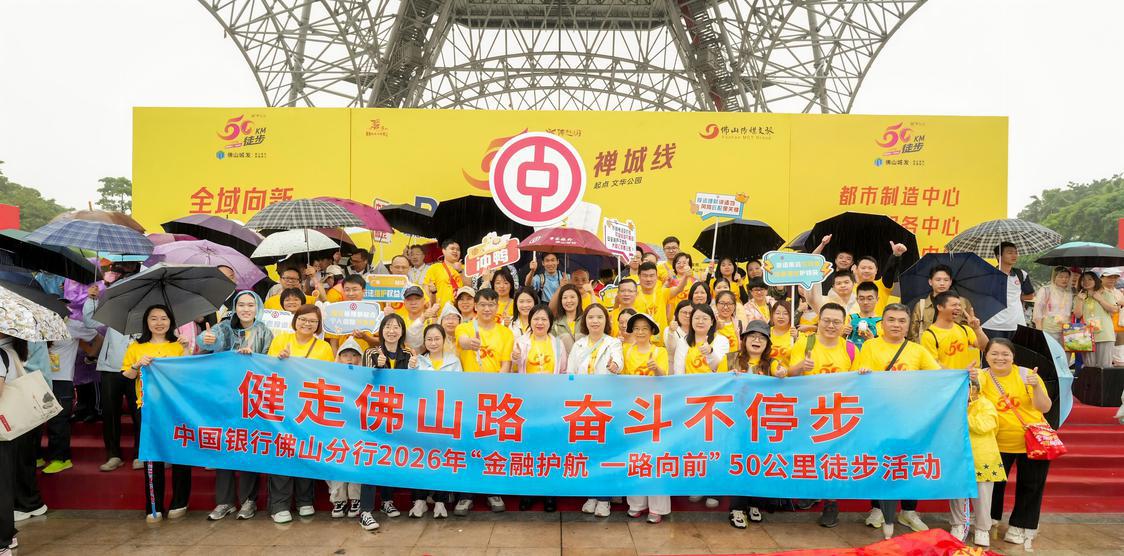 3月21日,“美丽佛山 一路向前”2026年佛山50公里徒步活动如约而至。在国家金融监督管理总局佛山监管分局指导下,中国银行佛山分行(以下简称“佛山中行”)以“健康徒步+金融宣教”创新模式,开展一场别开生面的“金融消保漫步行”Citywalk,向广大市民传递金融安全理念,实现“体育搭台、文旅促融、金融普及”的多元效益,进一步提升公众金融素养,筑牢金融安全防线。