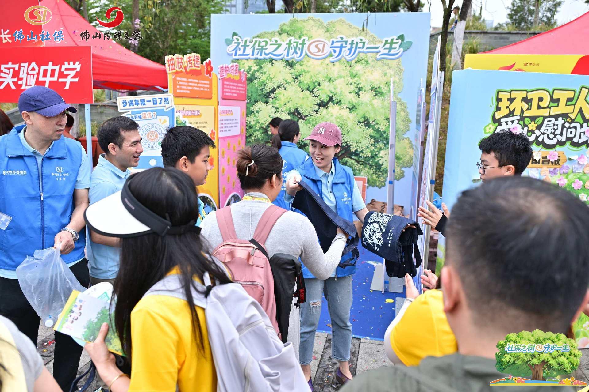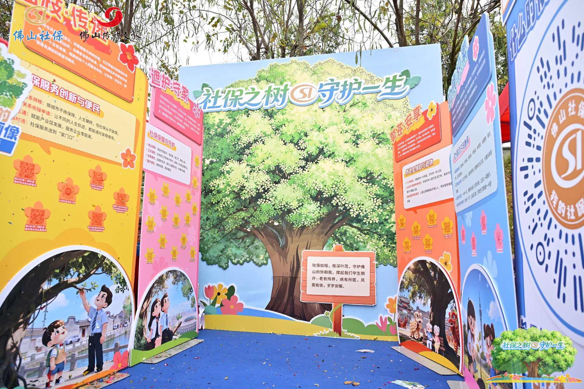 上午十点,一处以榕树造型呈现的巨型展板在南海徒步线亮相。展板树干上设置多个二维码,枝叶间标注“老有所养”“病有所医”“失有所助”“伤有所保”“育有所补”等关键词。市民扫码后,可进入整合后的社保政策聚合页面,查询养老、医疗、失业、工伤、生育等险种的核心政策、办事指南及最新调整信息。