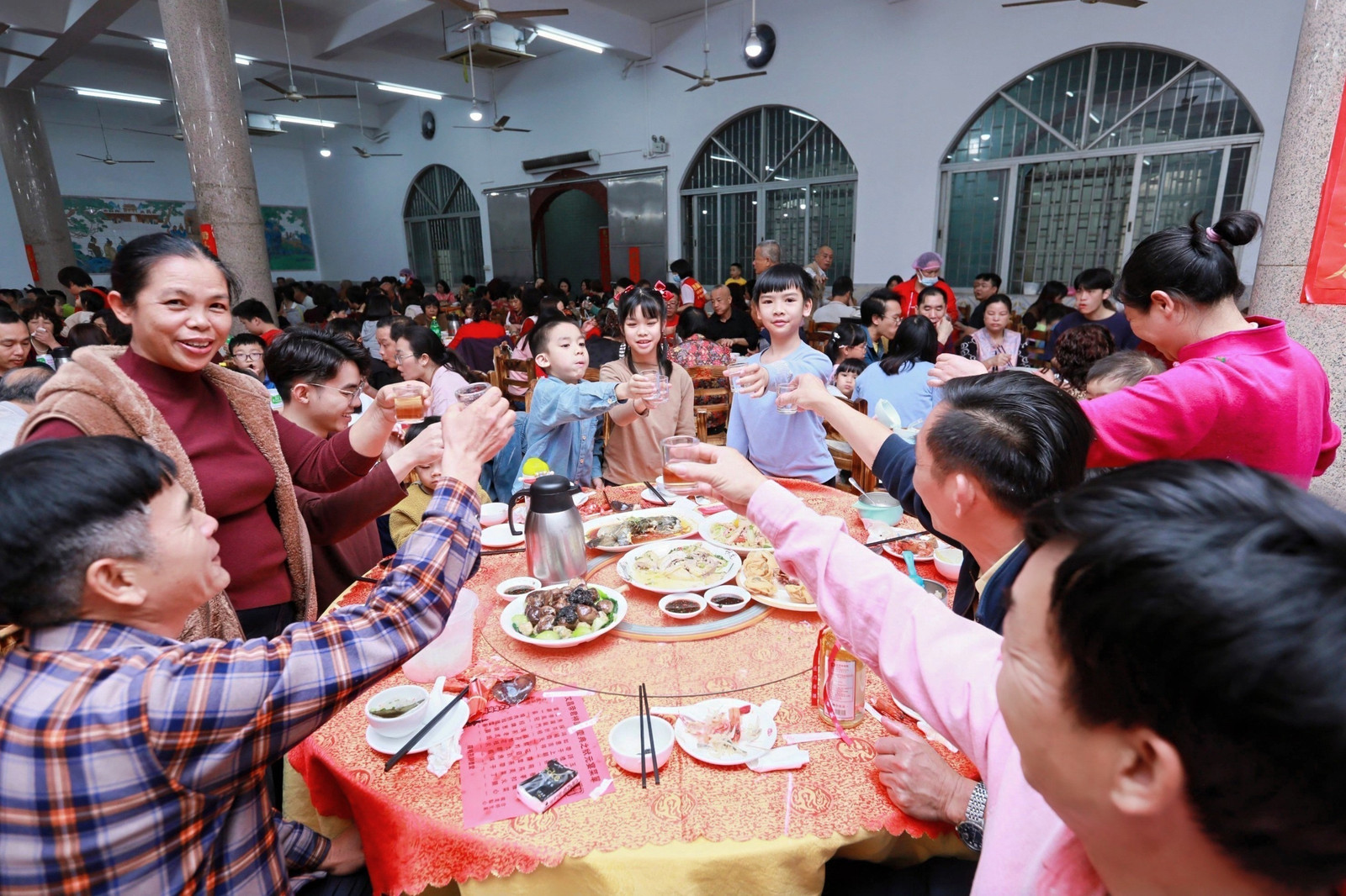 到了中午,东鲁大楼内百宴同席,上千人共聚一堂。金榜题名、鱼跃龙门……状元宴上的每道菜肴都寄托着美好寓意。这是一场祈福开智的盛宴,也是一次欢聚叙情的时刻。