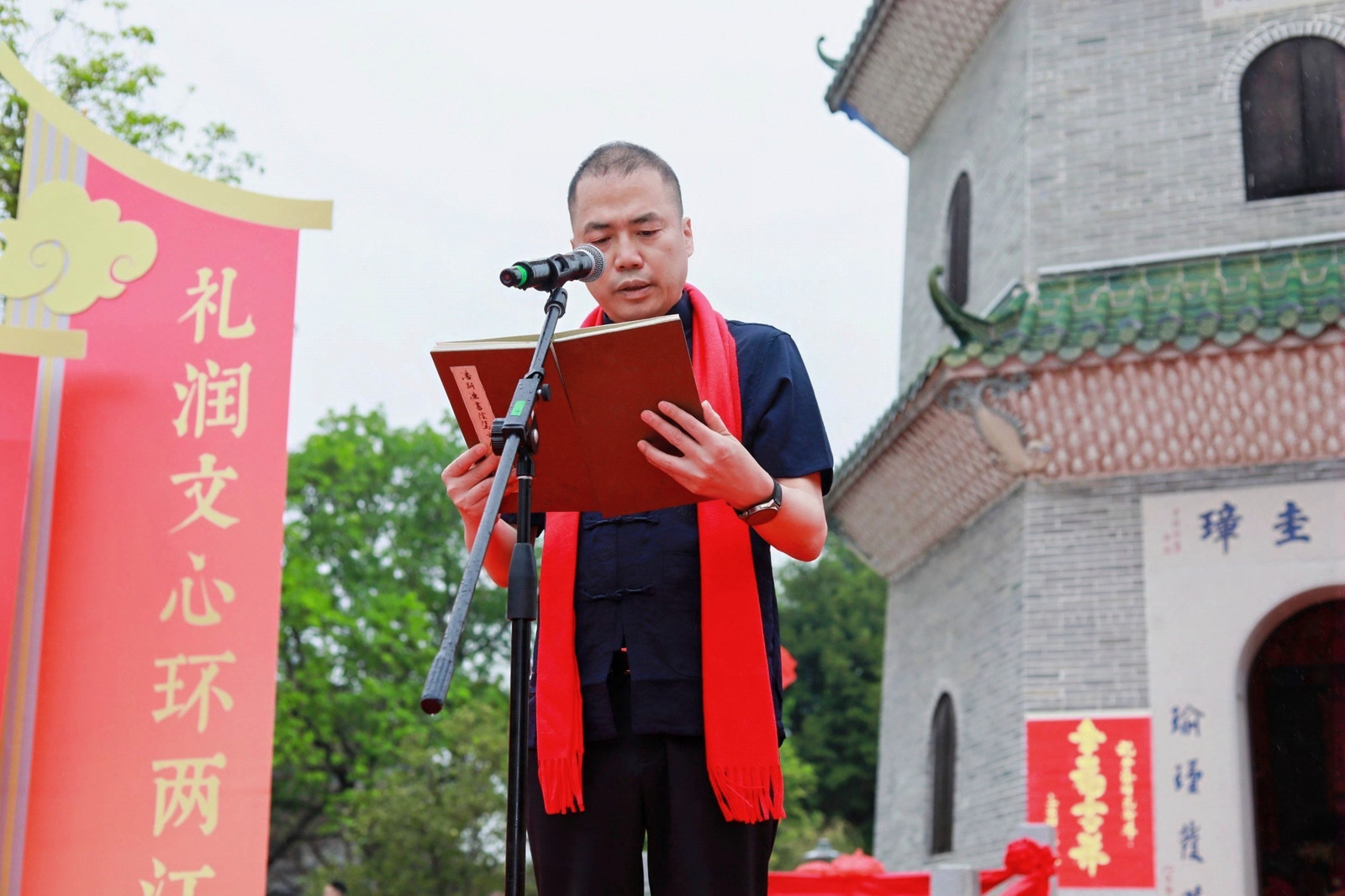 孔繁文带领众人齐声诵读。