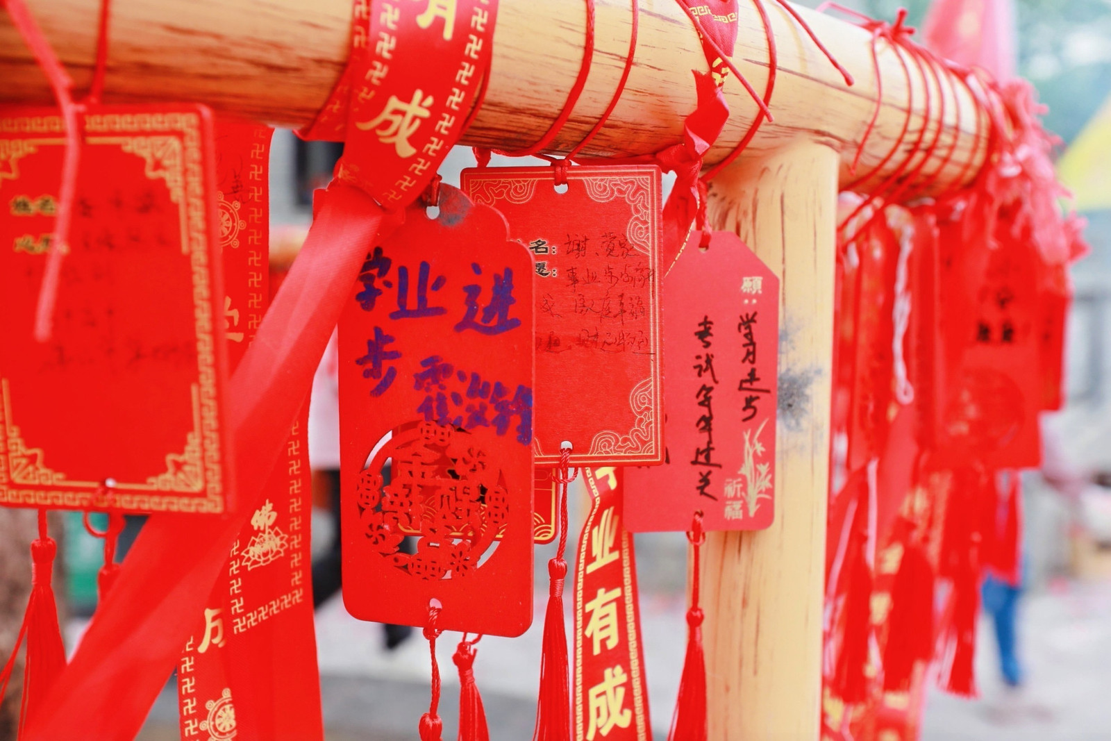 村民们挂上祈愿牌。