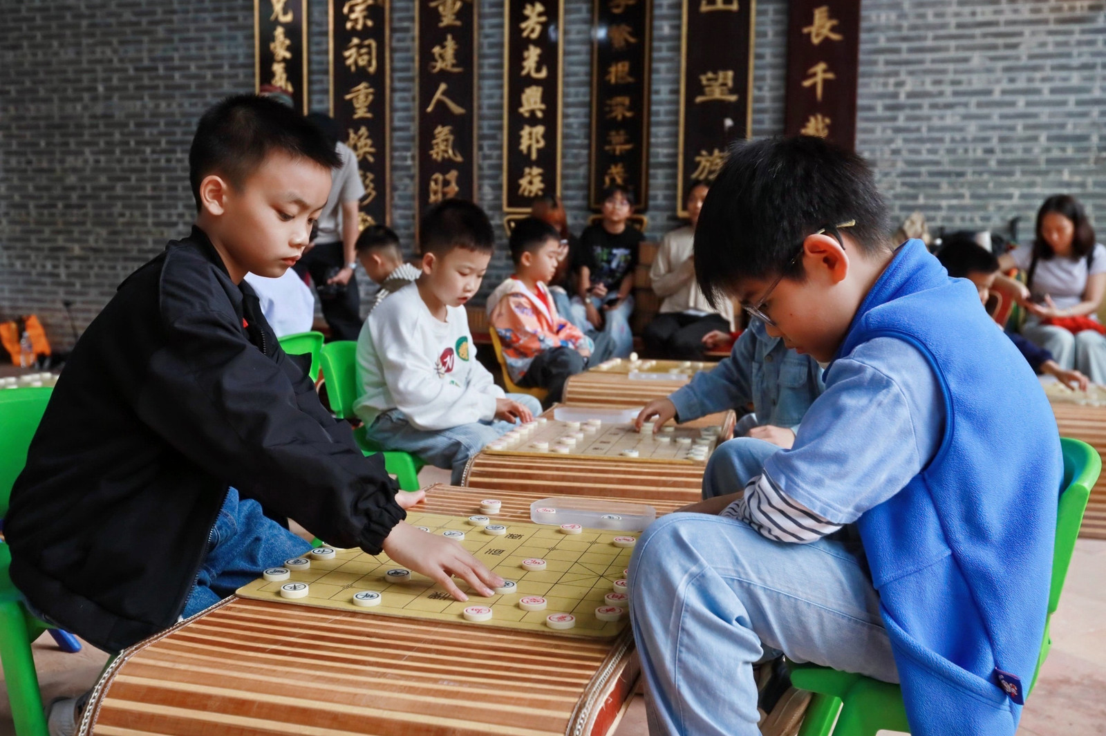 下午两点,在孔家村诗礼堂,“文昌杯”少儿棋艺比赛鸣锣开战。少年棋手们端坐对弈,沉着思考、从容落子,在棋盘上斗智斗勇、一决高下。