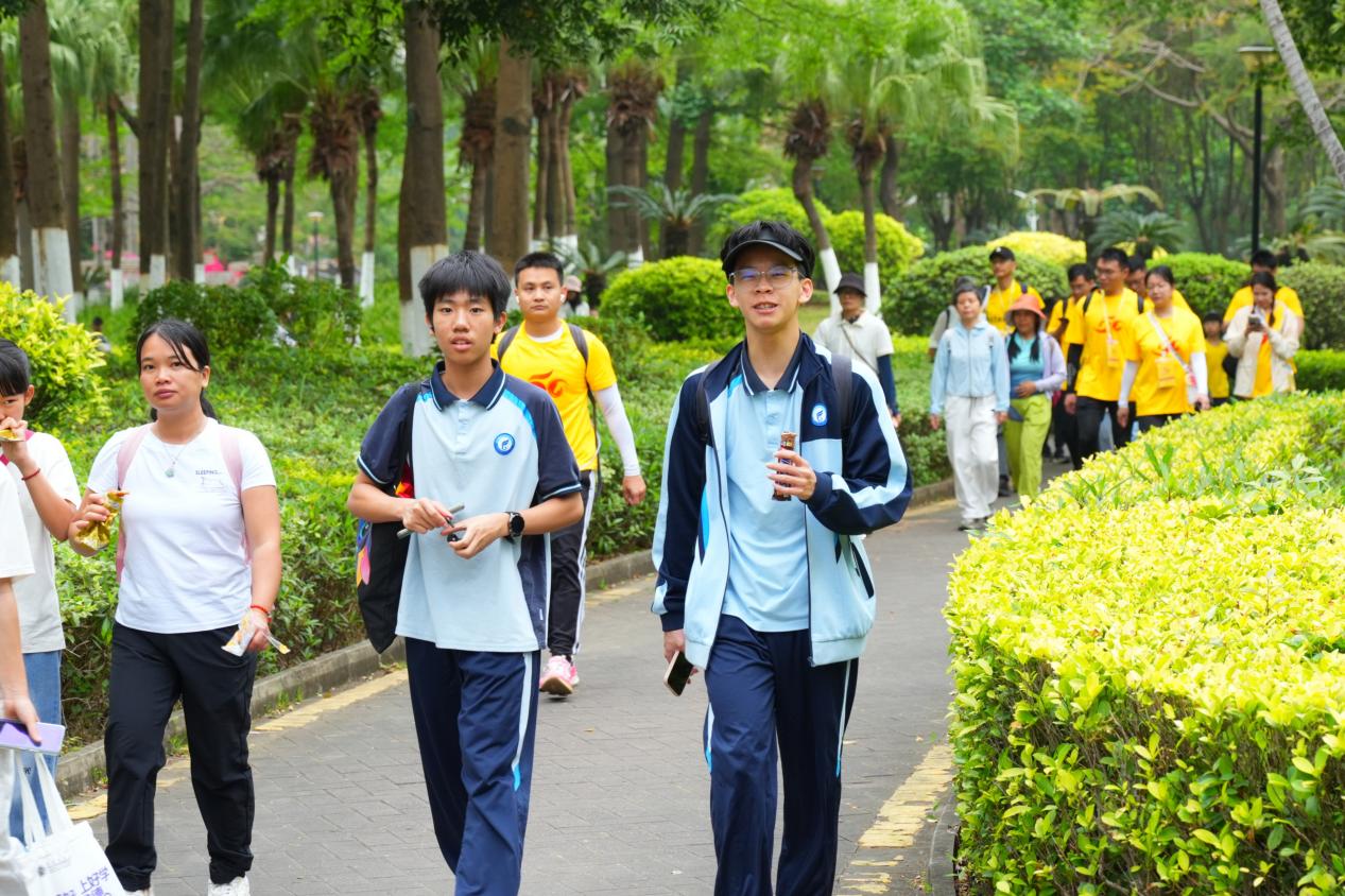 7时许,学子们登上大巴,向西江国际游艇会进发。起点处,碧波荡漾的西江水与少年们的朝气交相辉映。8时,随着响亮的鸣枪声响起,师生、家长们纷纷迈开步伐,踏上征途。队伍沿滨江绿道前行,一路上的木棉树花开正艳,滨荷Park生态文创园、荷城公园等打卡点引得同学们纷纷驻足合影。班主任与家长志愿者紧随队伍,用镜头记录下少年们与春日同行的灿烂笑颜。