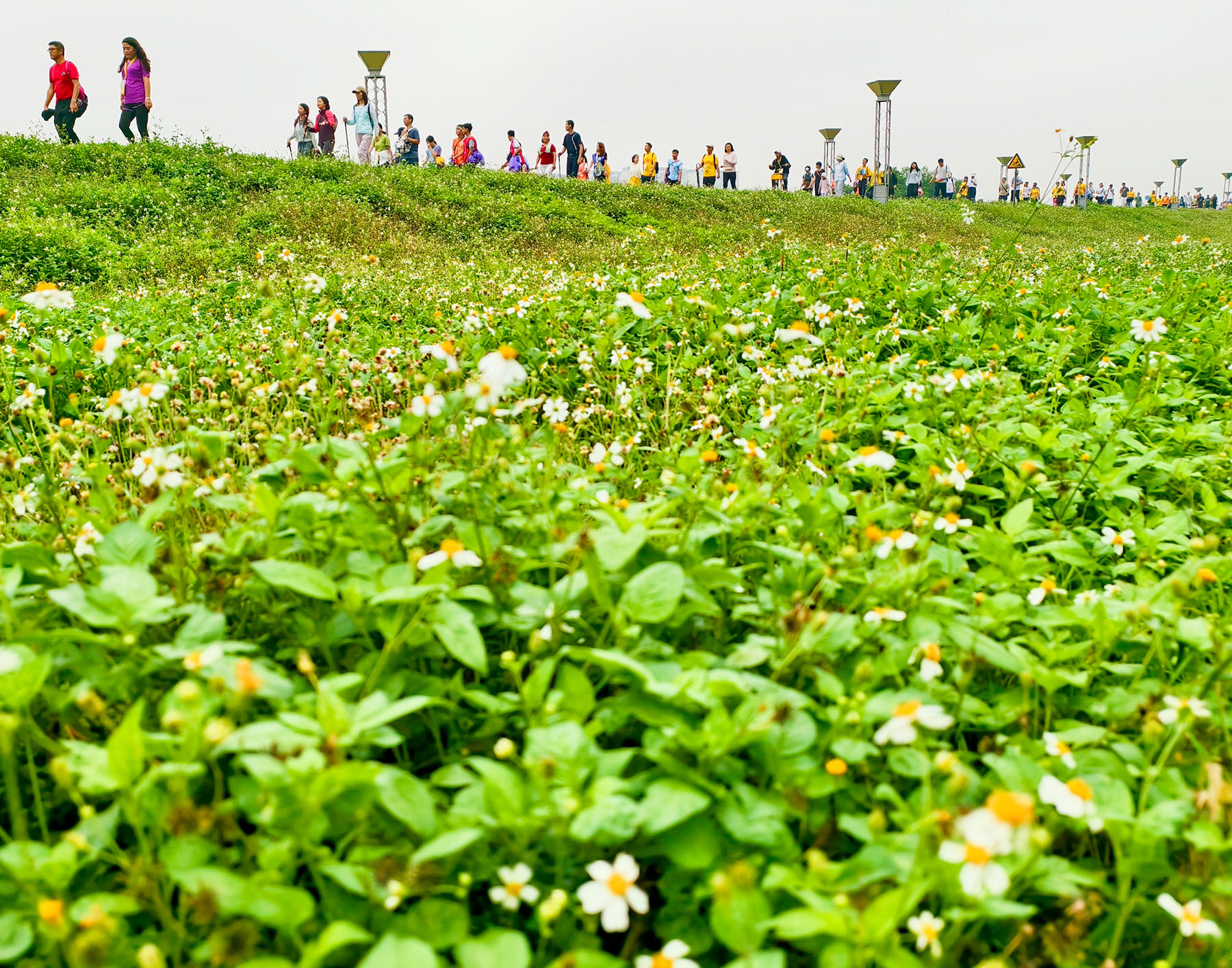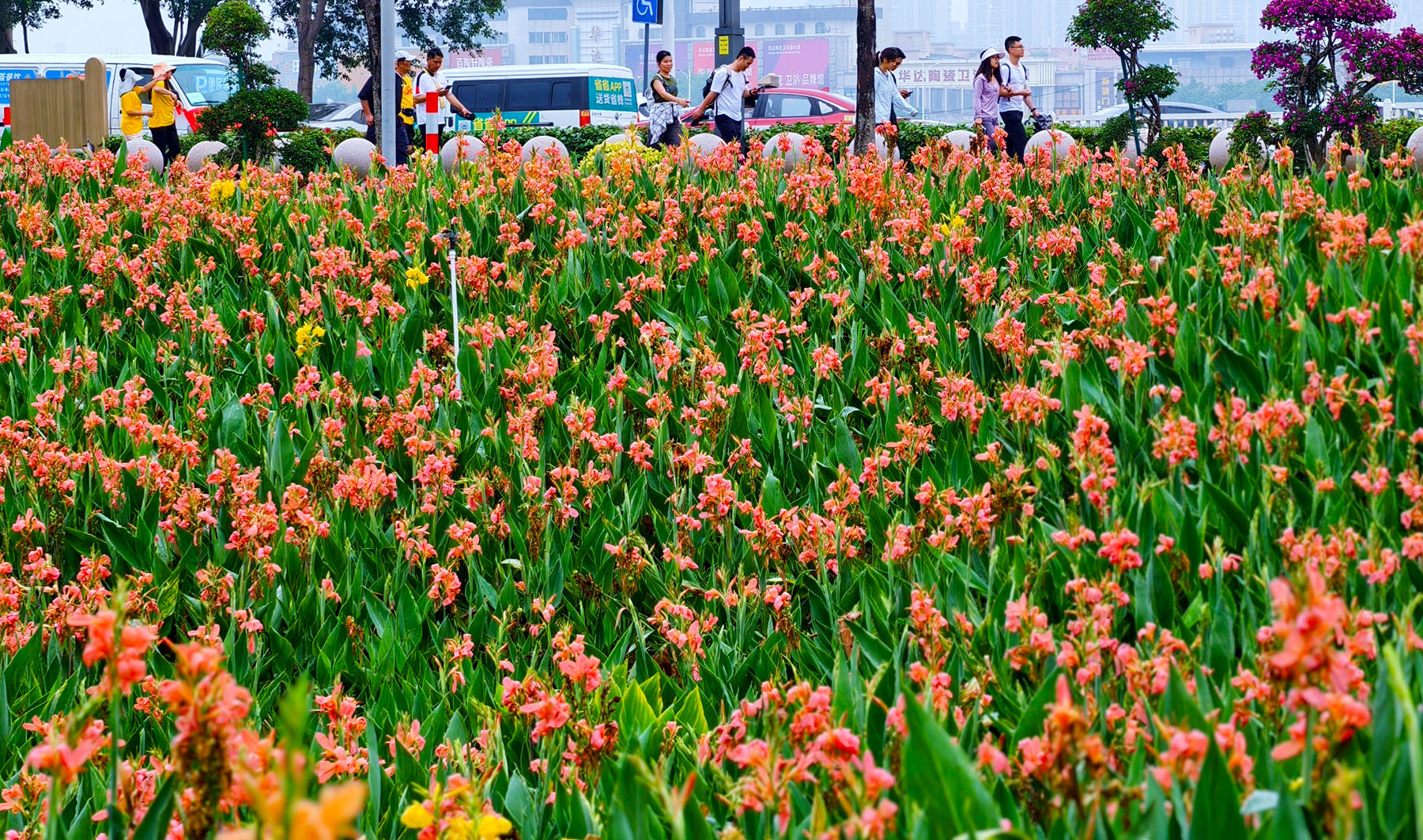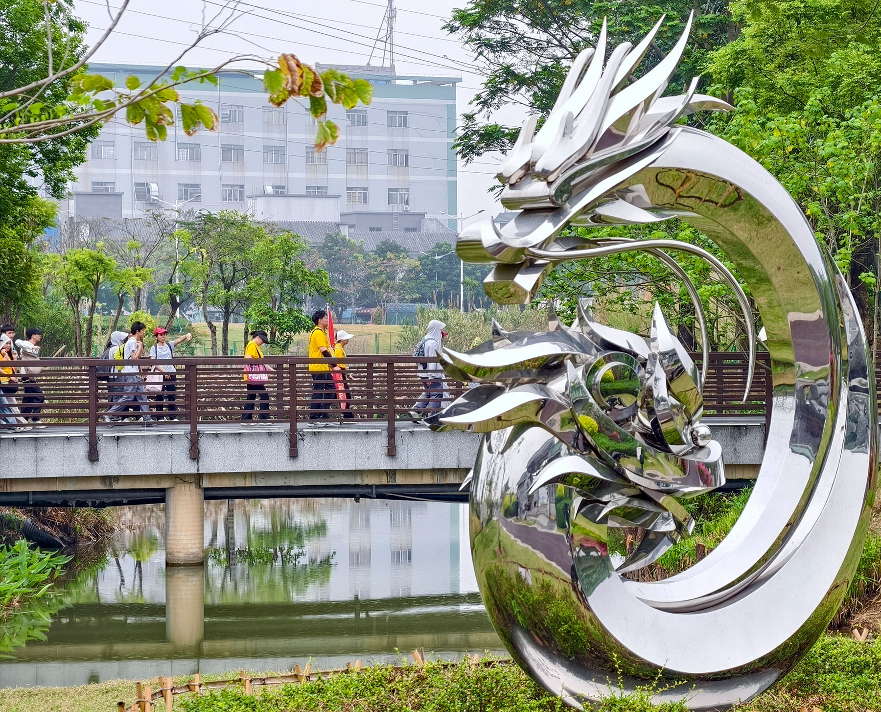 清晨6时,在南海文化中心,早到的徒步市民已经开始留影了。
