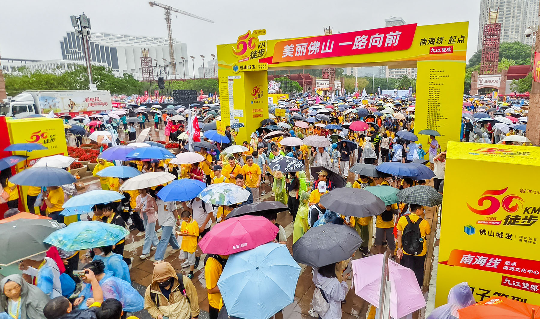 3月21日,2026佛山50公里徒步火热举行。尽管天空飘着小雨,仍有大批市民热情参与,冒雨前行、步履不停。大家沿着路线前行,一路欣赏佛山城市美景与河畔风光,在雨中感受运动快乐,用脚步丈量城市,尽显佛山市民活力与风采。